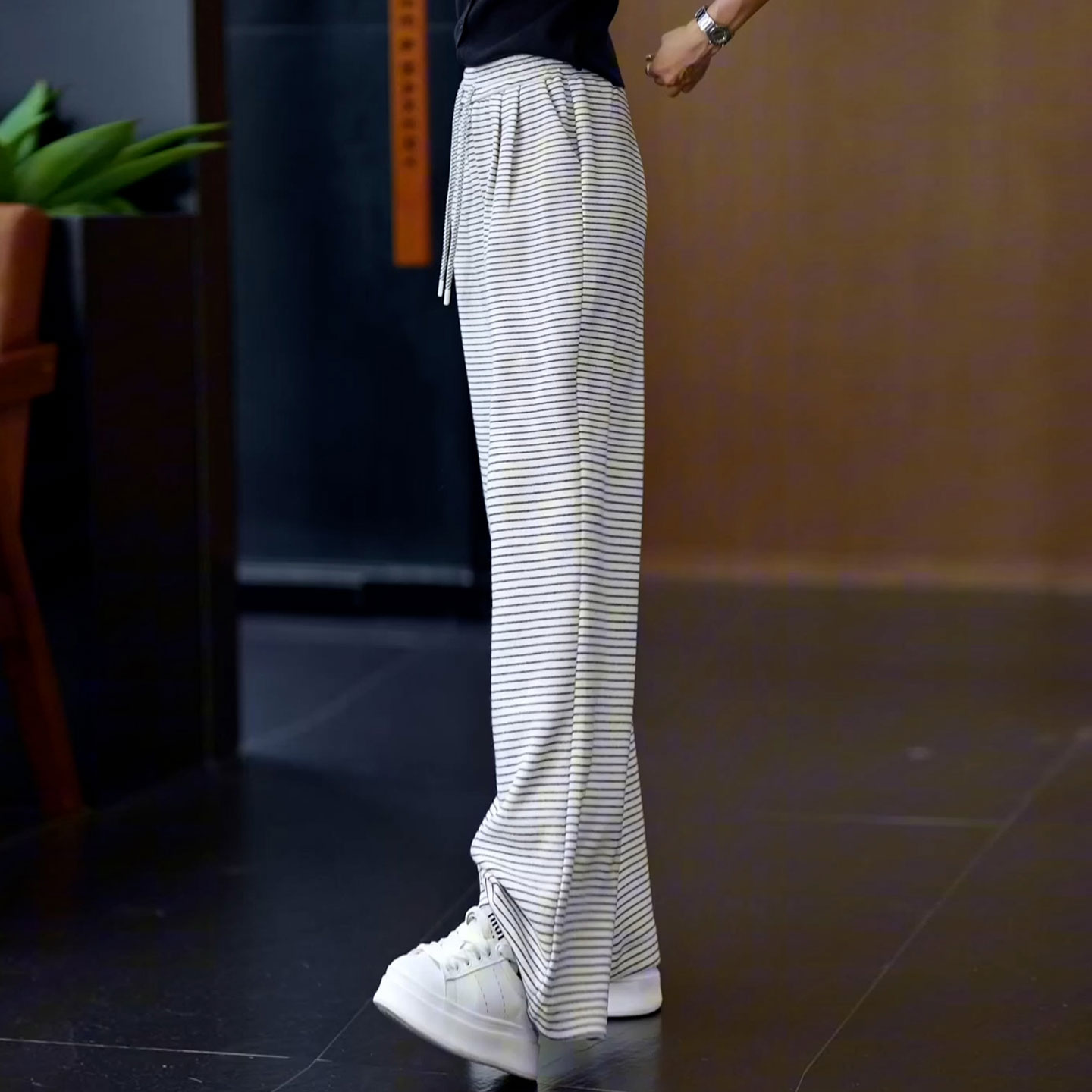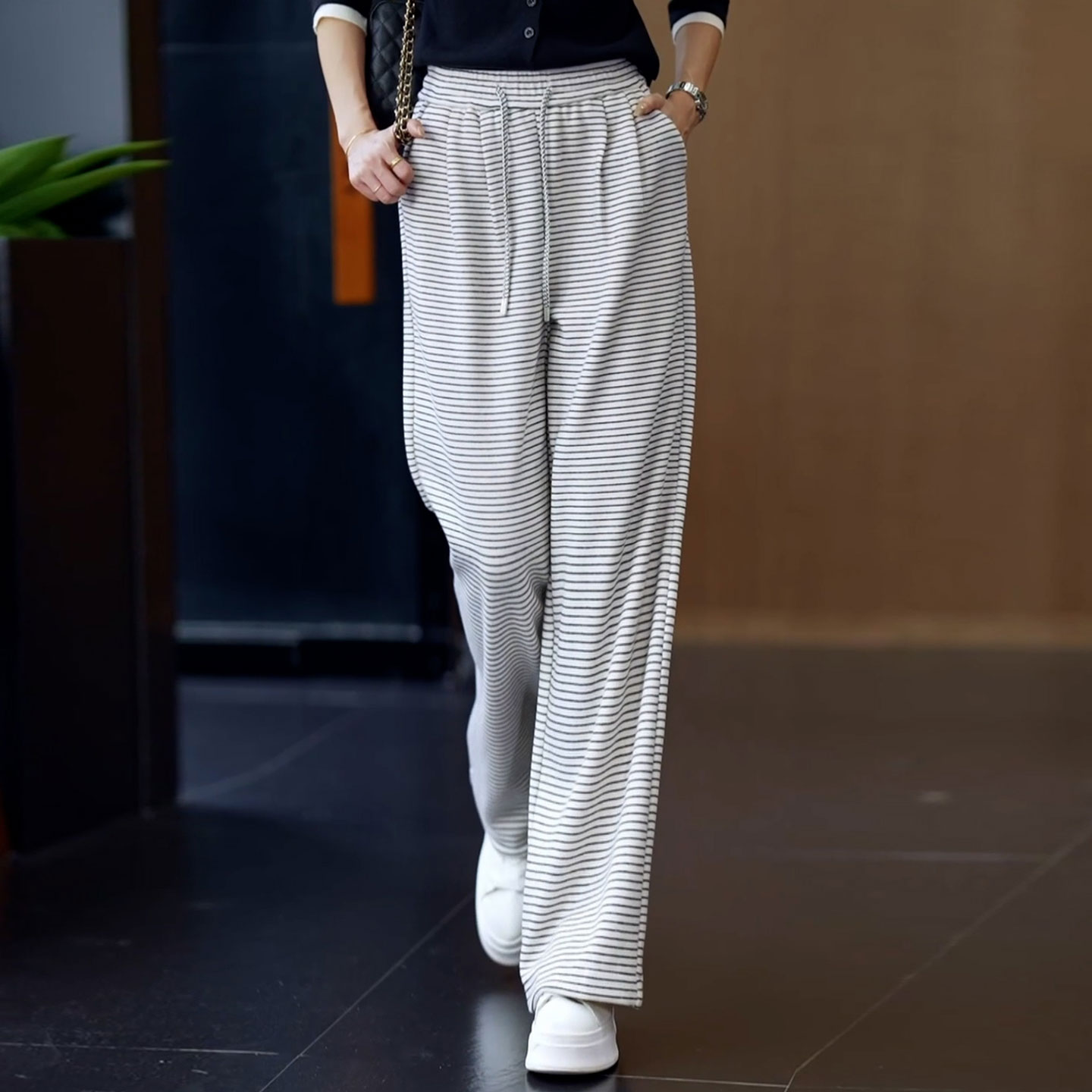秋冬新款条纹休闲阔腿裤女2025爆款松紧腰垂感长裤高腰百搭直筒裤