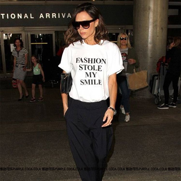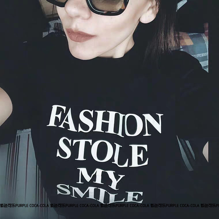 新宽松纯棉圆领字母印花短袖t恤 女大码BF风欧洲站百搭短袖潮tee