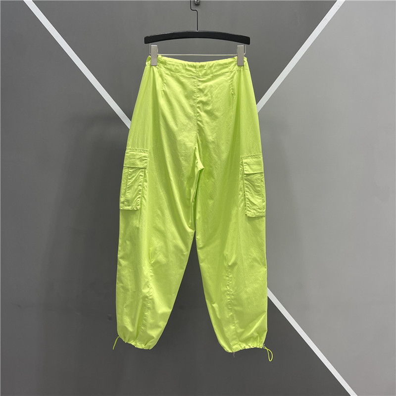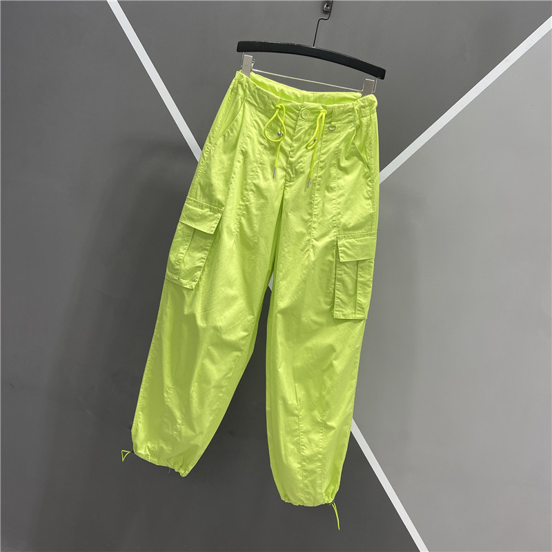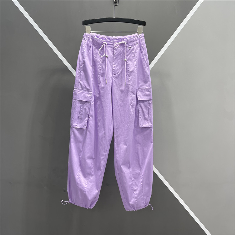 糖果色薄款休闲大口袋束脚裤女2025夏季新款高腰系带时尚哈伦裤潮