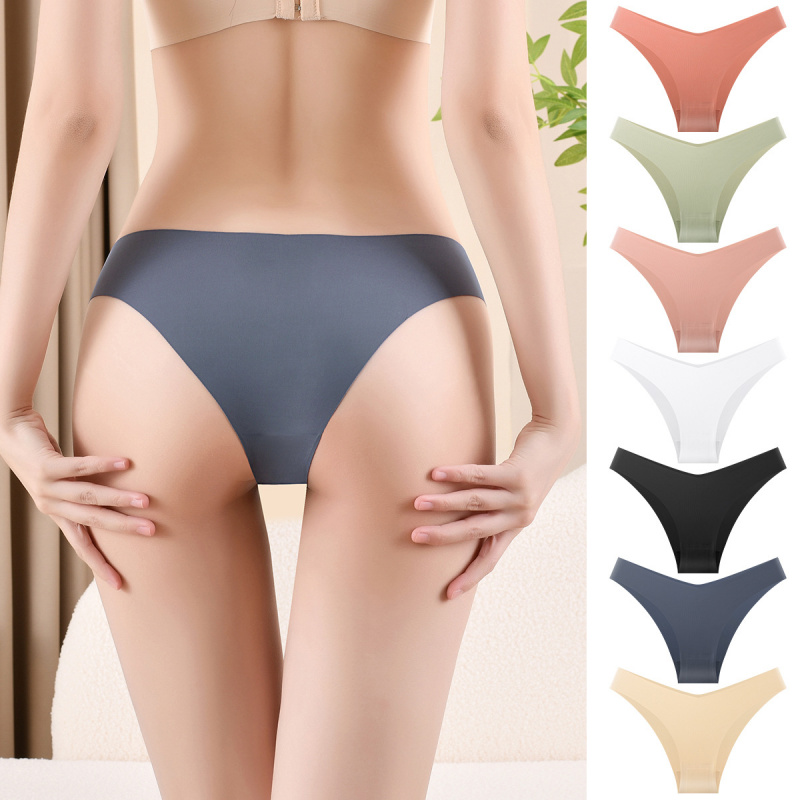 欧美无痕一片式冰丝女士内裤中腰