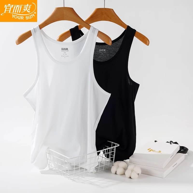 宜而爽男士100支精梳纯棉薄款透气背心中老年宽松无袖吸汗衫夏季