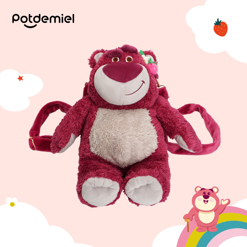 迪士尼正版potdemiel草莓熊毛绒双肩包公仔玩偶玩具送生日礼物女