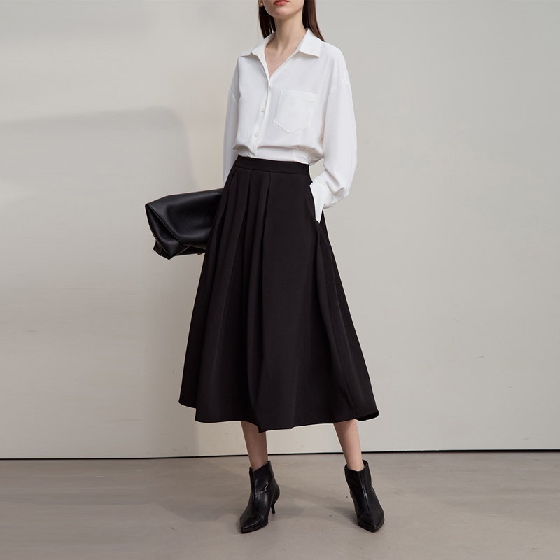 Amii【优雅通勤】25秋高级风法式通勤百褶半身裙A字长款裙半裙