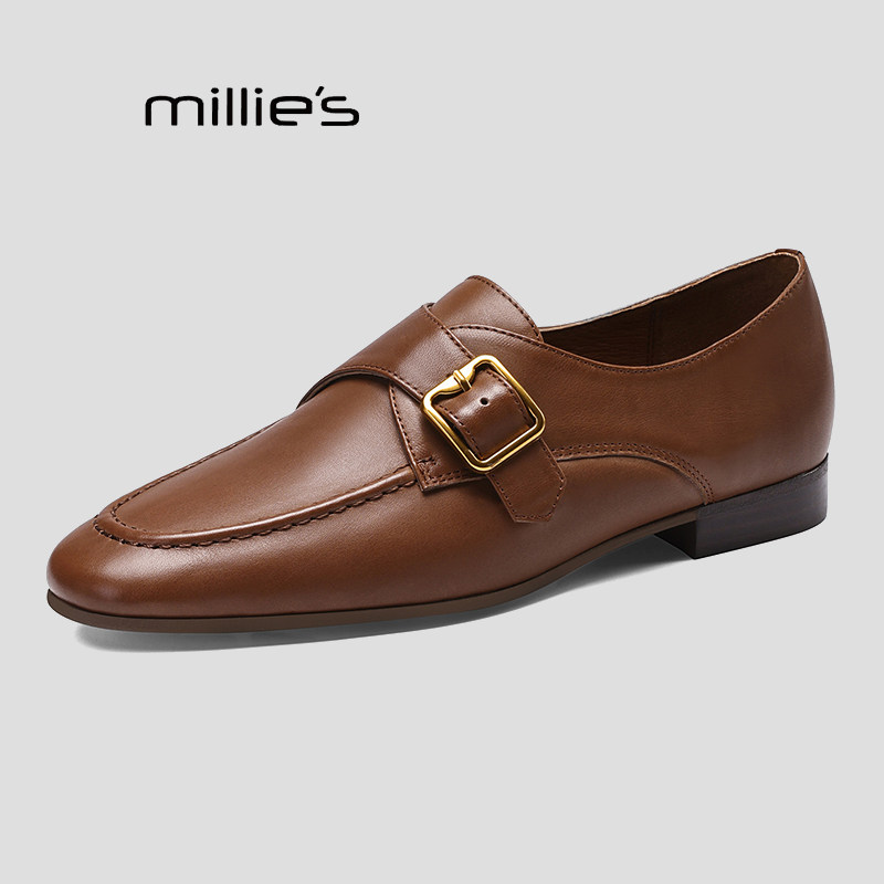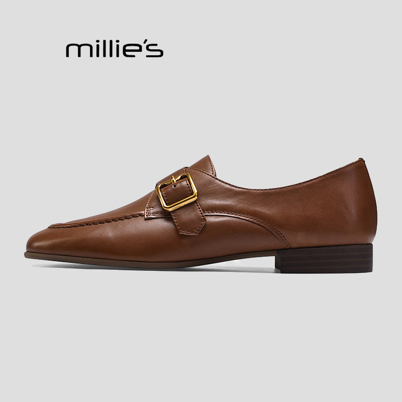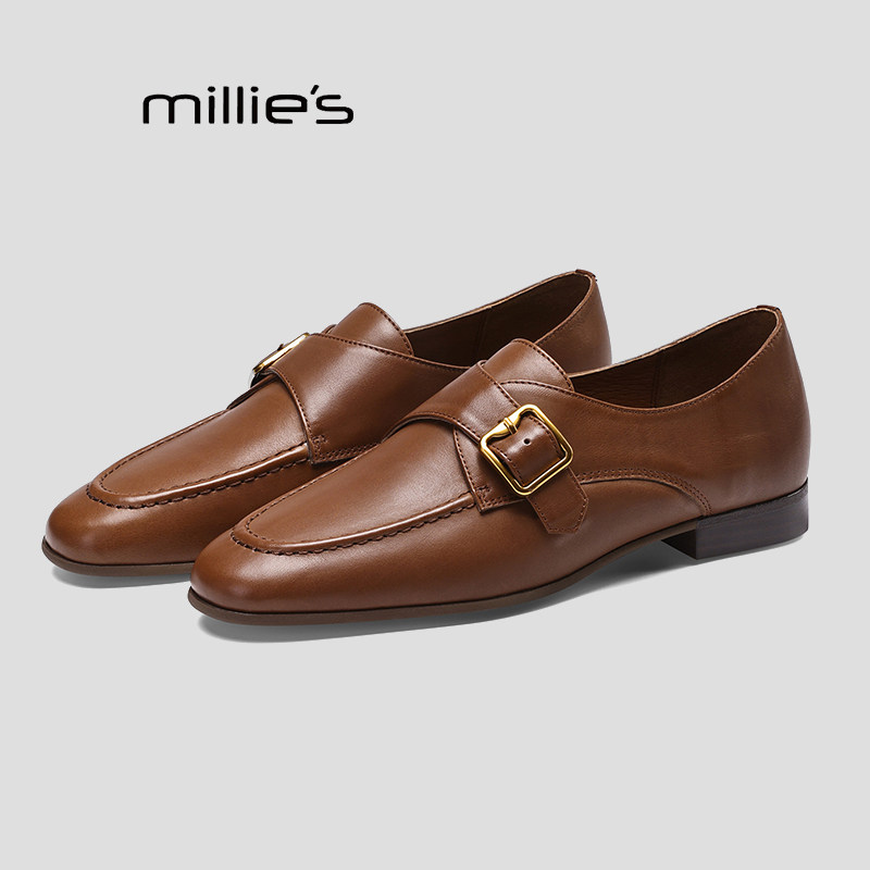 MILLIE'S/妙丽乐福鞋女春季新款平底单鞋女英伦风小皮鞋通勤女鞋Q