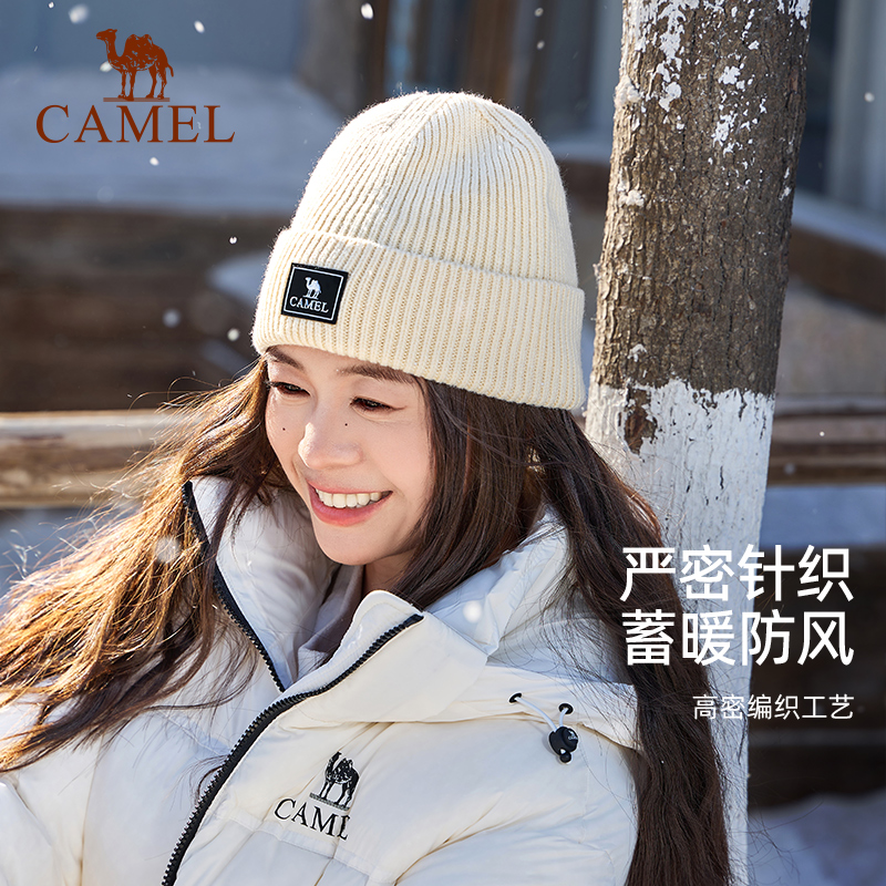 骆驼针织帽女秋冬纯色百搭保暖防风护耳雪山帽大头围冷帽毛线帽子