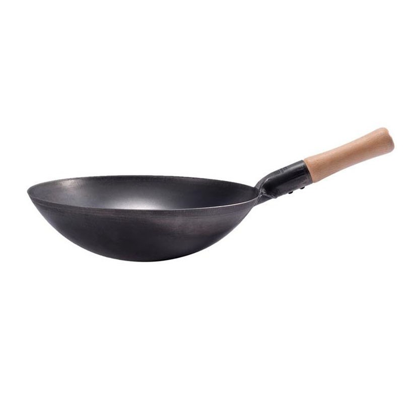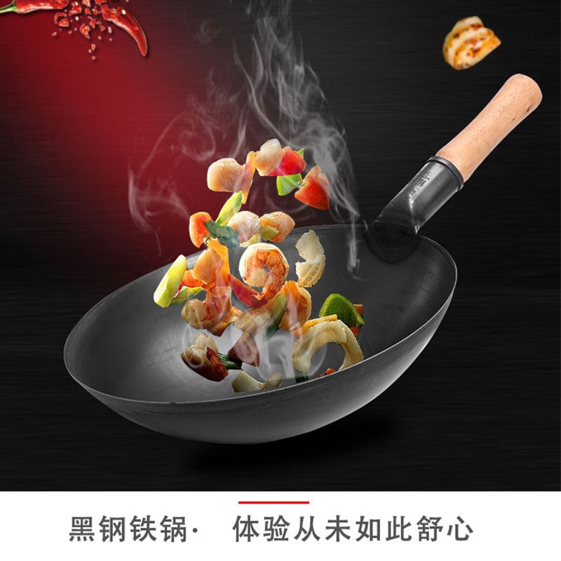维意酒店商用厨师锅爆炒猛火灶专用炒锅老式家用铁锅木柄圆底不沾