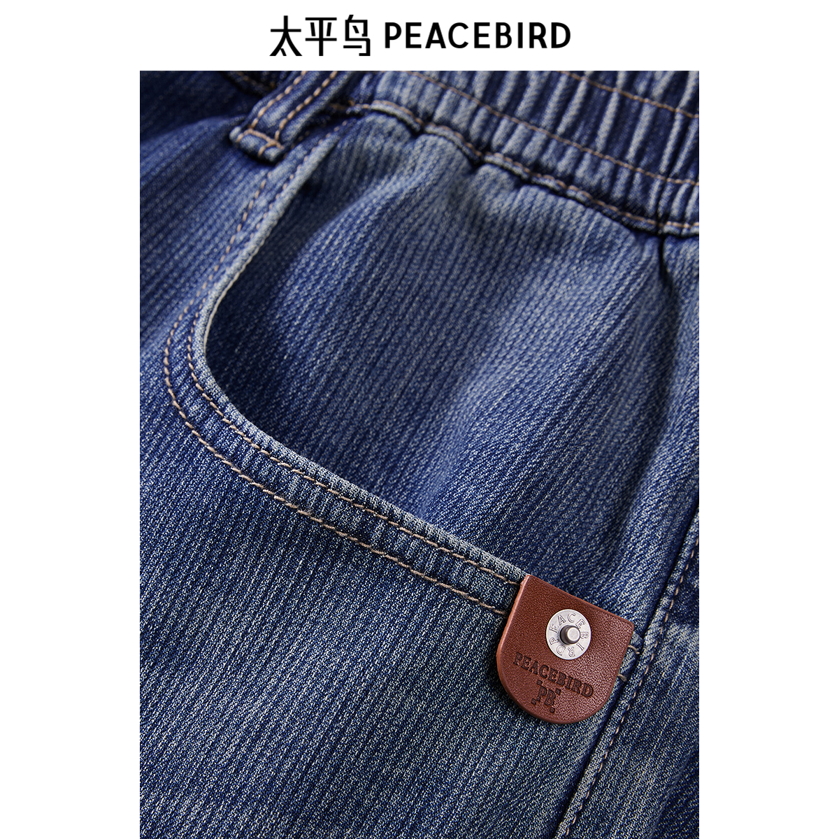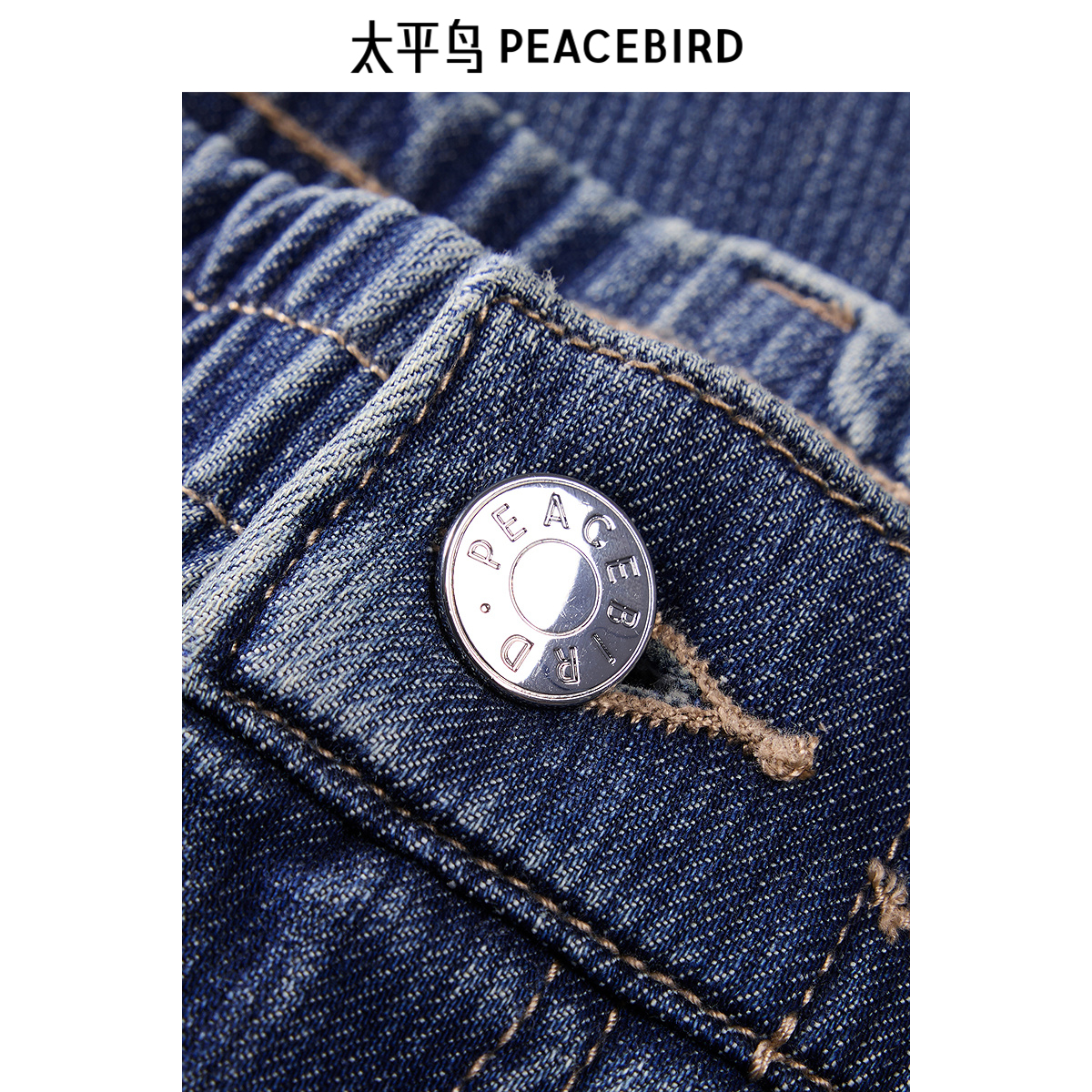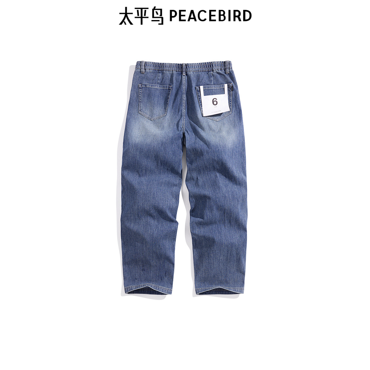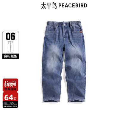 太平鸟男装水洗做旧牛仔裤秋季美式复古直筒阔腿裤潮流