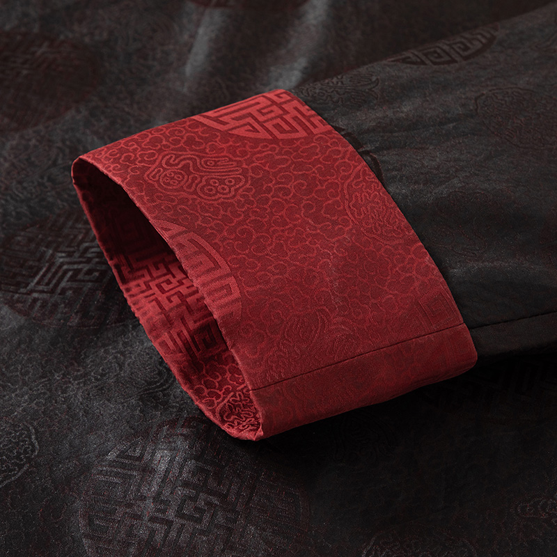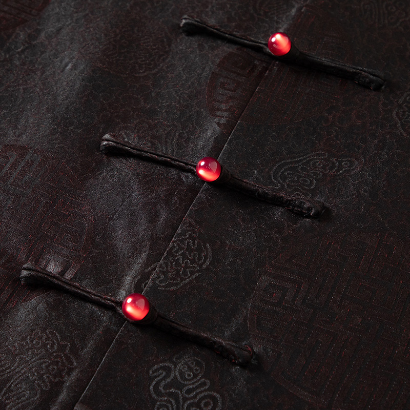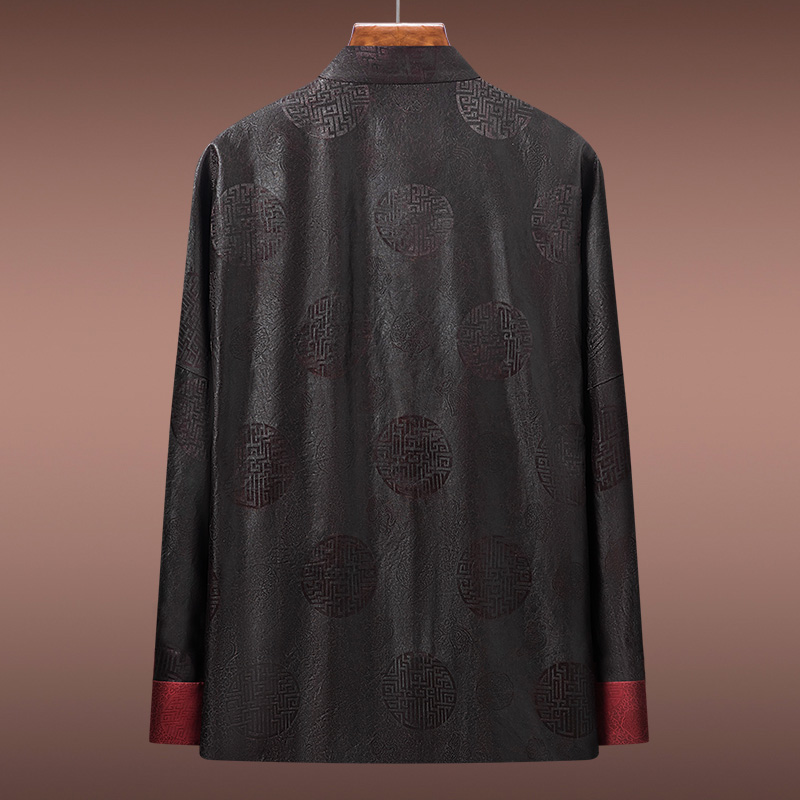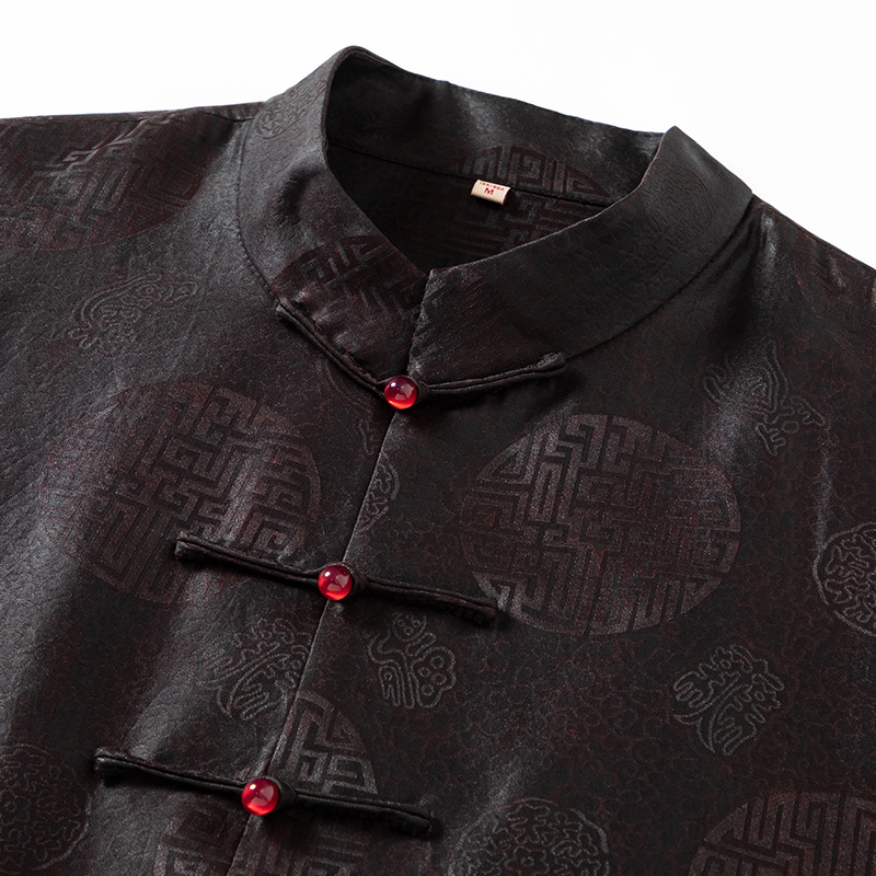 高端重磅香云纱唐装男连袖真丝桑蚕丝中式男装汉服中老年爷爷外套