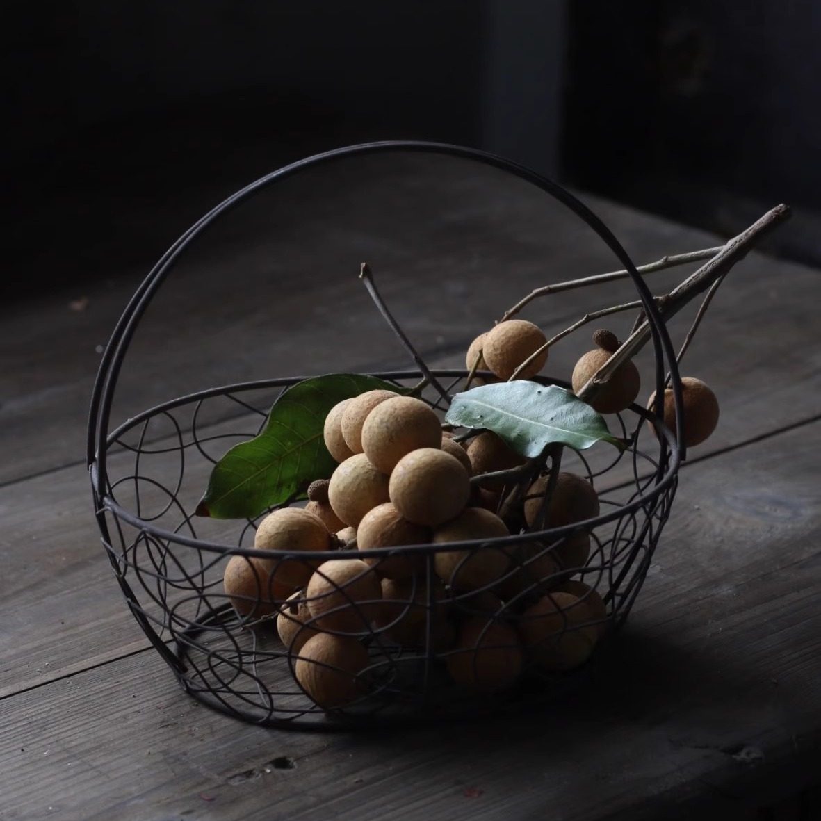 乡村铁艺花篮 野餐篮 面包筐美食拍摄道具复古怀旧杂货收纳小篮子