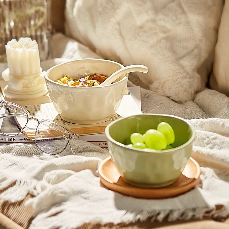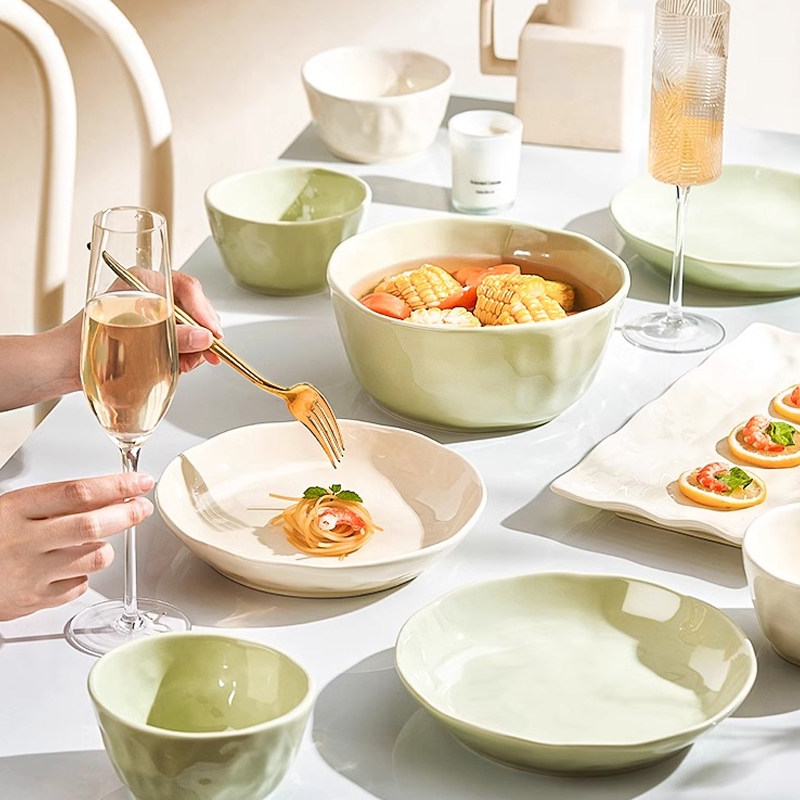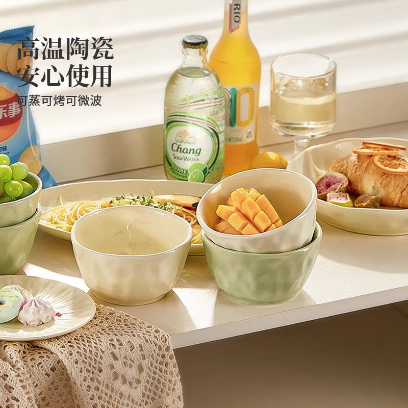 奶油风陶瓷米饭碗家用好看吃饭碗2025新款餐具盘子高颜值碗碟套装