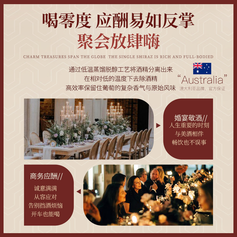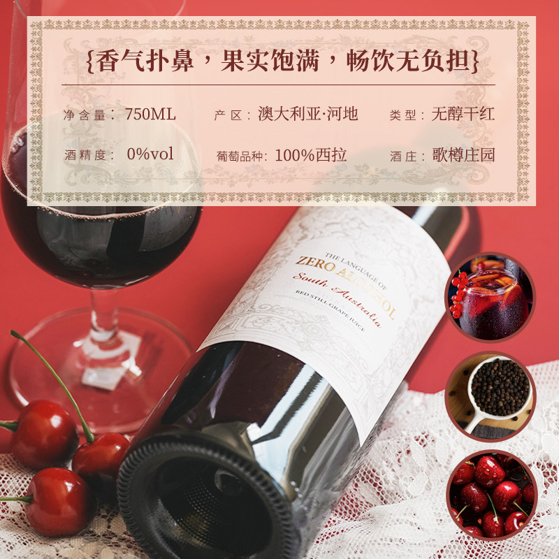 【自营】澳大利亚无酒精脱醇红酒无醇葡萄酒整箱零度红葡萄汁婚礼