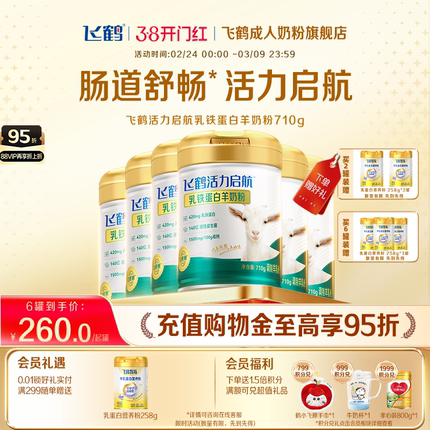 【38开门红】飞鹤活力启航乳铁蛋白羊奶粉中老年成人710g多罐