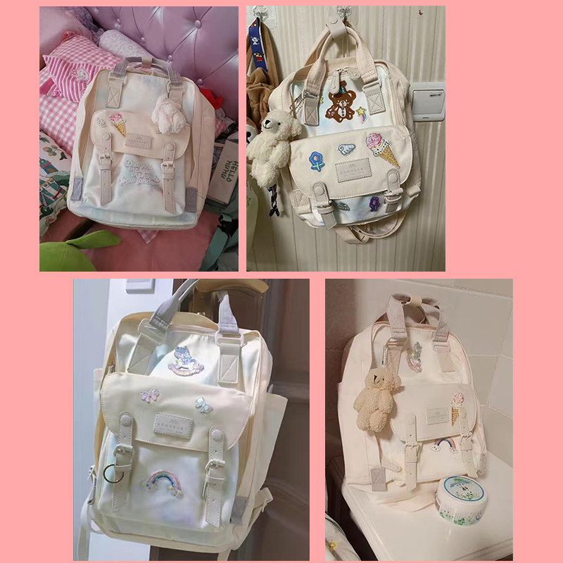 香港林小宅甜甜圈双肩包石色粉紫高中初中生书包女电脑防水背包