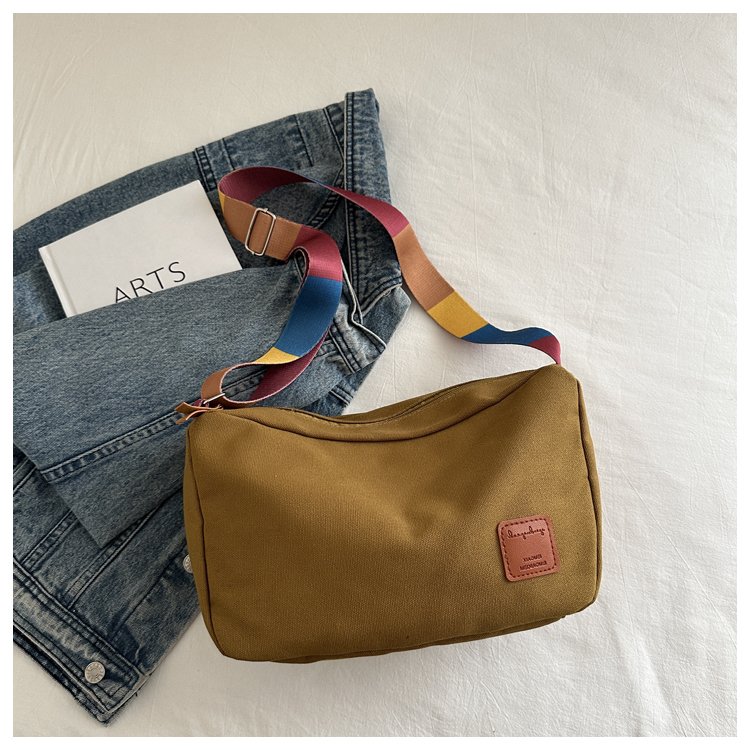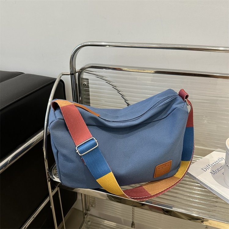 撞色女大容量通勤帆布包日系ins学生上课百搭邮差包纯色斜挎包