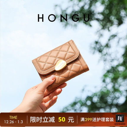 HONGU红谷女士钱包女短款新款真皮卡包钱夹多功能一体零钱包薄