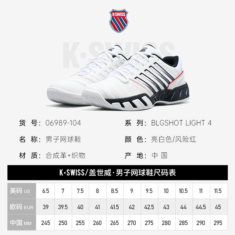 KSWISS盖世威网球鞋男子25新品BIGSHOT LIGHT4缓冲耐磨专业运动鞋