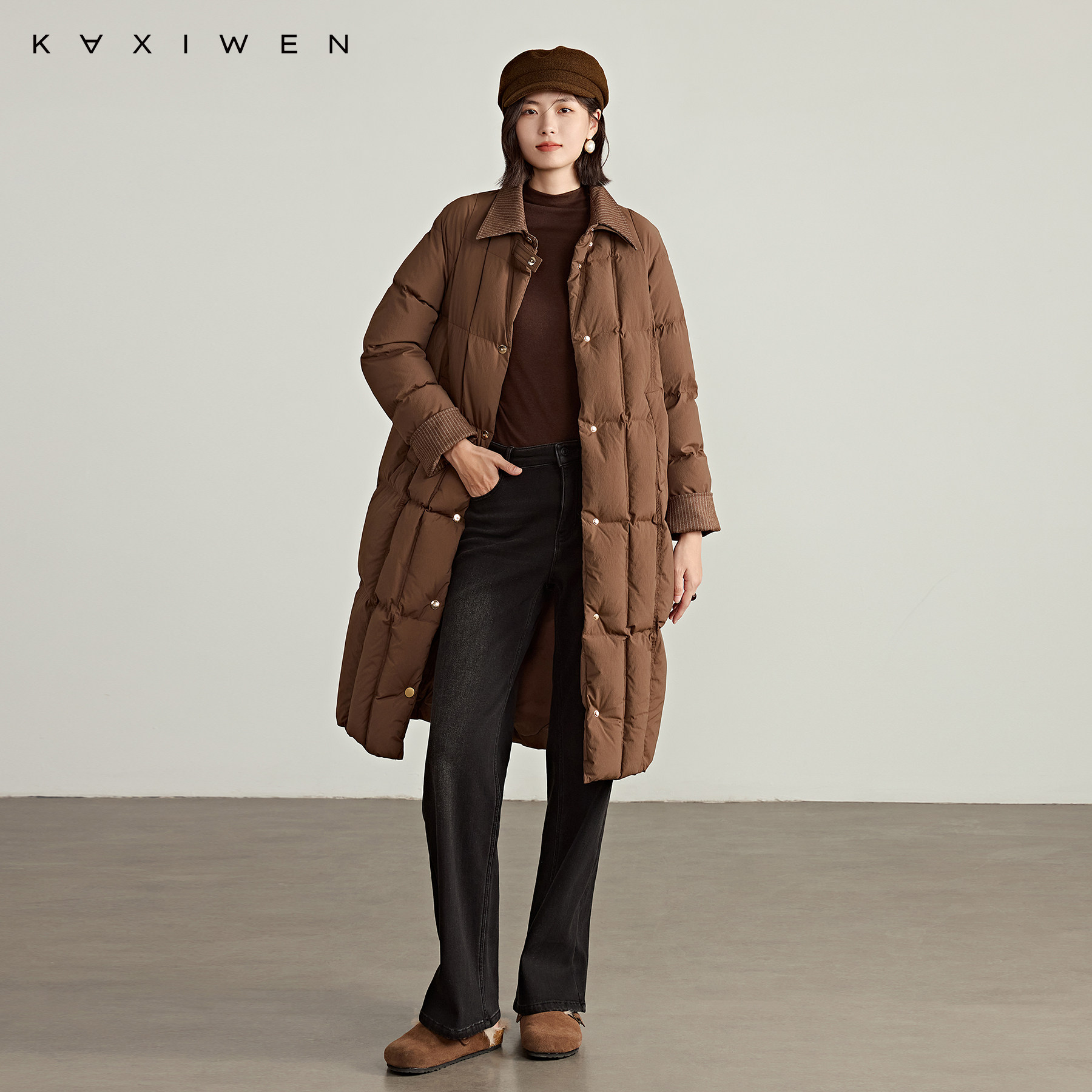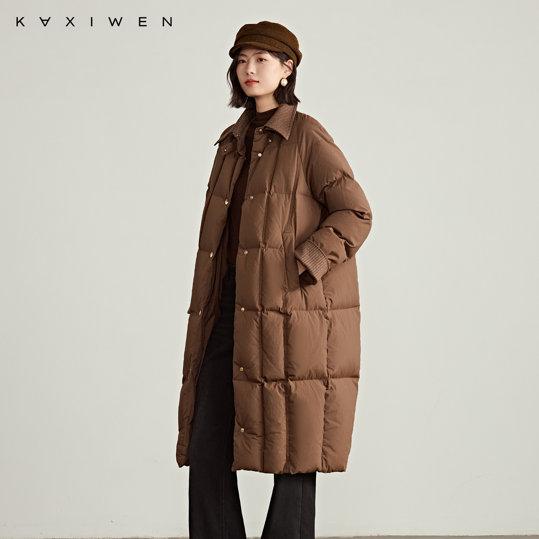 巴恩风长款翻领羽绒服