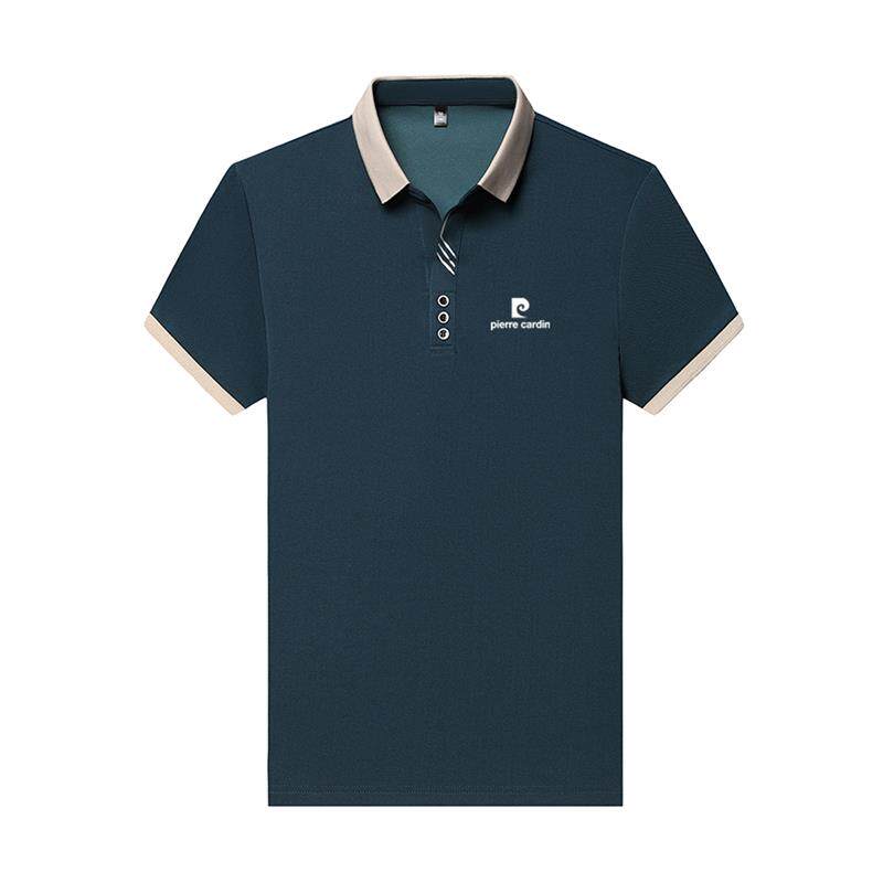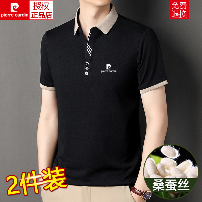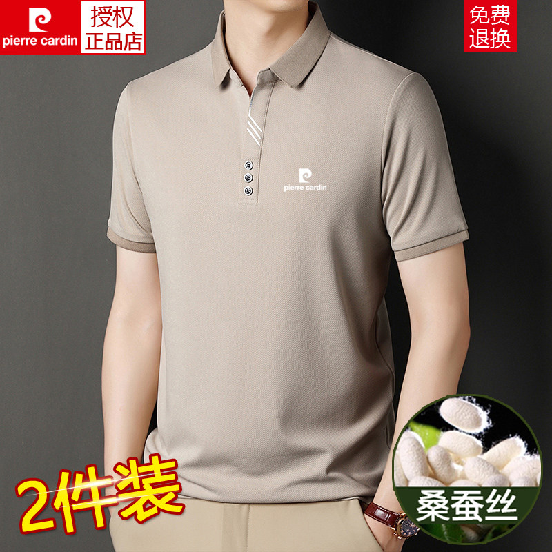 皮尔卡丹夏季新款桑蚕丝短袖t恤男士翻领polo衫中年薄款冰丝体恤