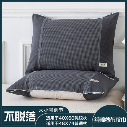 夏季纯棉纱布枕巾一对一条半包式防滑魔术枕头套家用单人情侣枕巾