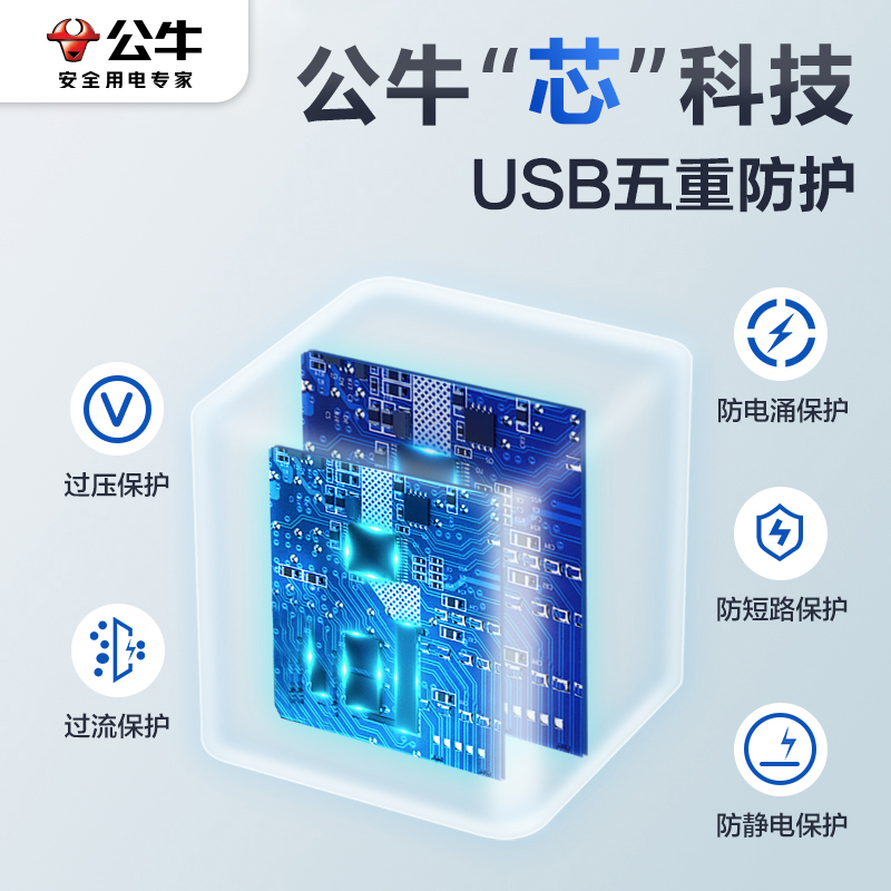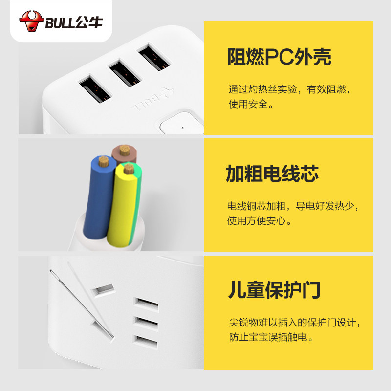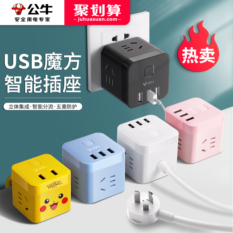 公牛魔方插座带usb接口充电多功能家用多孔接线板小插排插板带线
