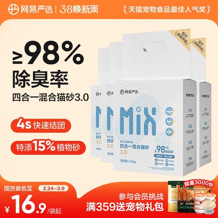 网易严选四合一混合猫砂豆腐砂除臭无尘木薯猫砂膨润土不粘底防臭