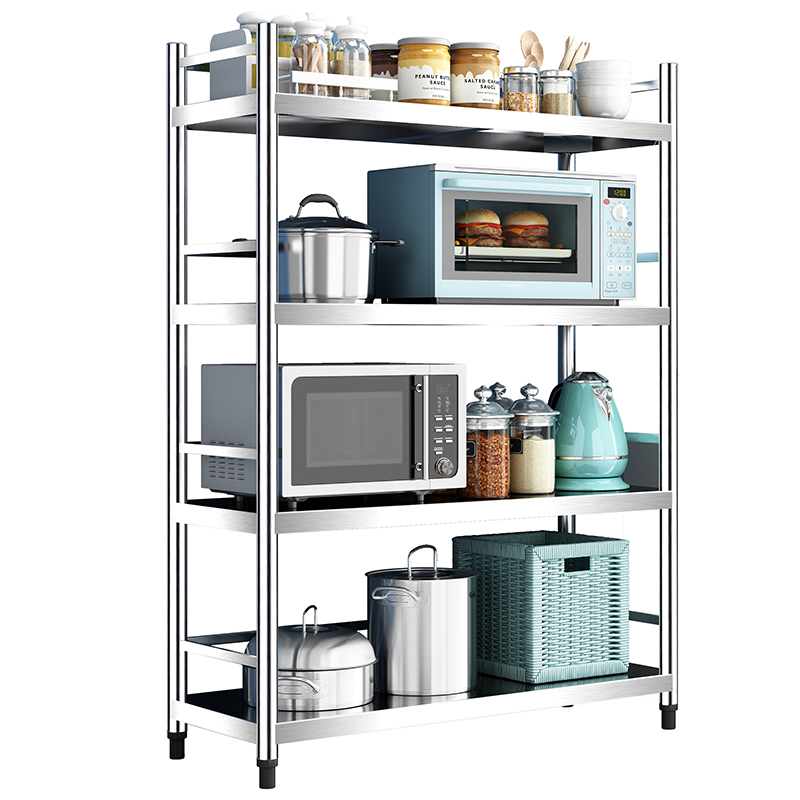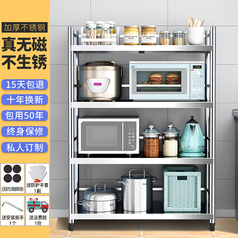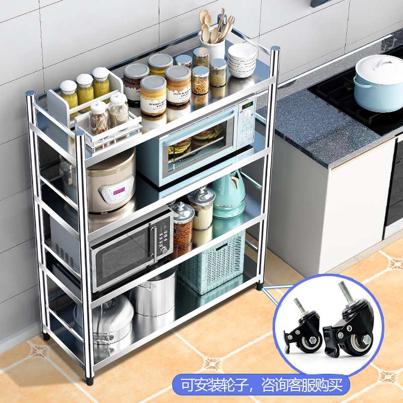 4层不锈钢厨房置物架落地多层微波炉带围栏收纳放锅架子储物货架3