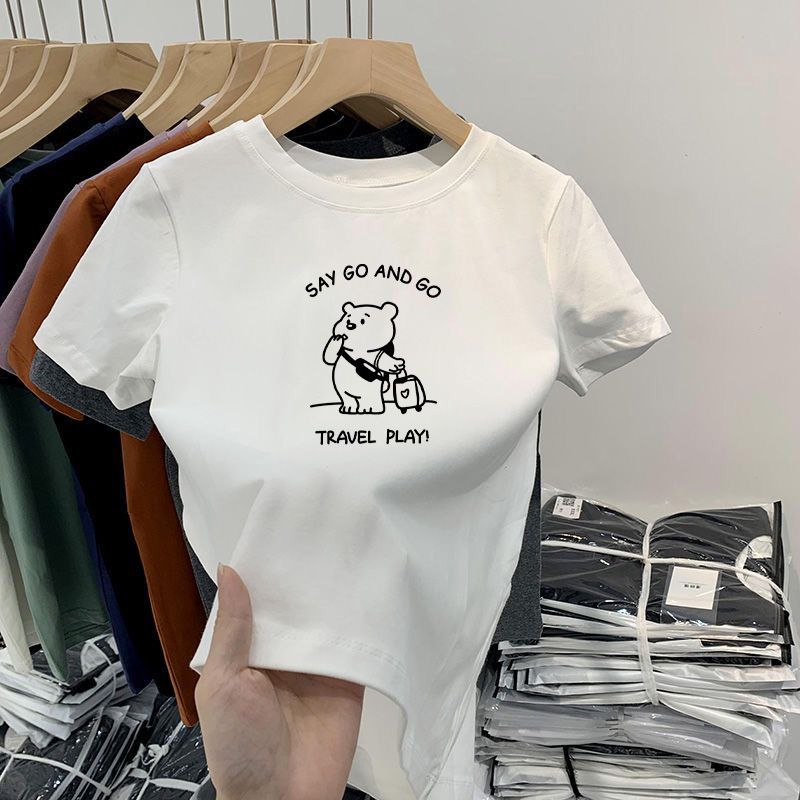 正肩纯棉圆领短袖T恤女2025夏季新款通勤上衣小众百搭洋气体恤衫