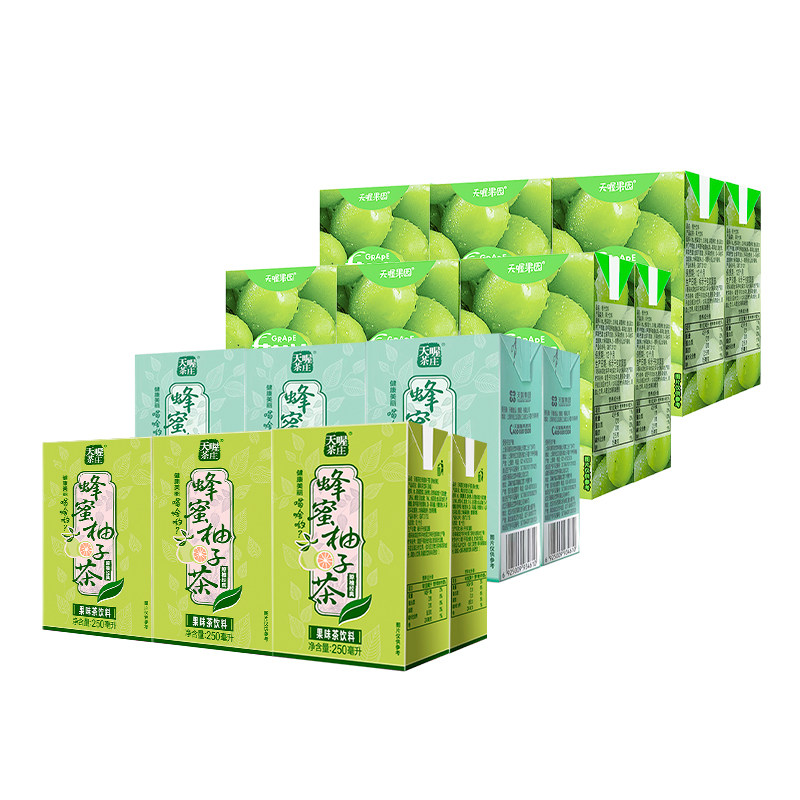 天喔蜂蜜柚子茶250ml*24葡萄汁组合夏季解腻饮料整箱装