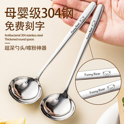 食品级304不锈钢勺子家用吃饭长柄勺子个人专用可爱汤勺调羹汤匙
