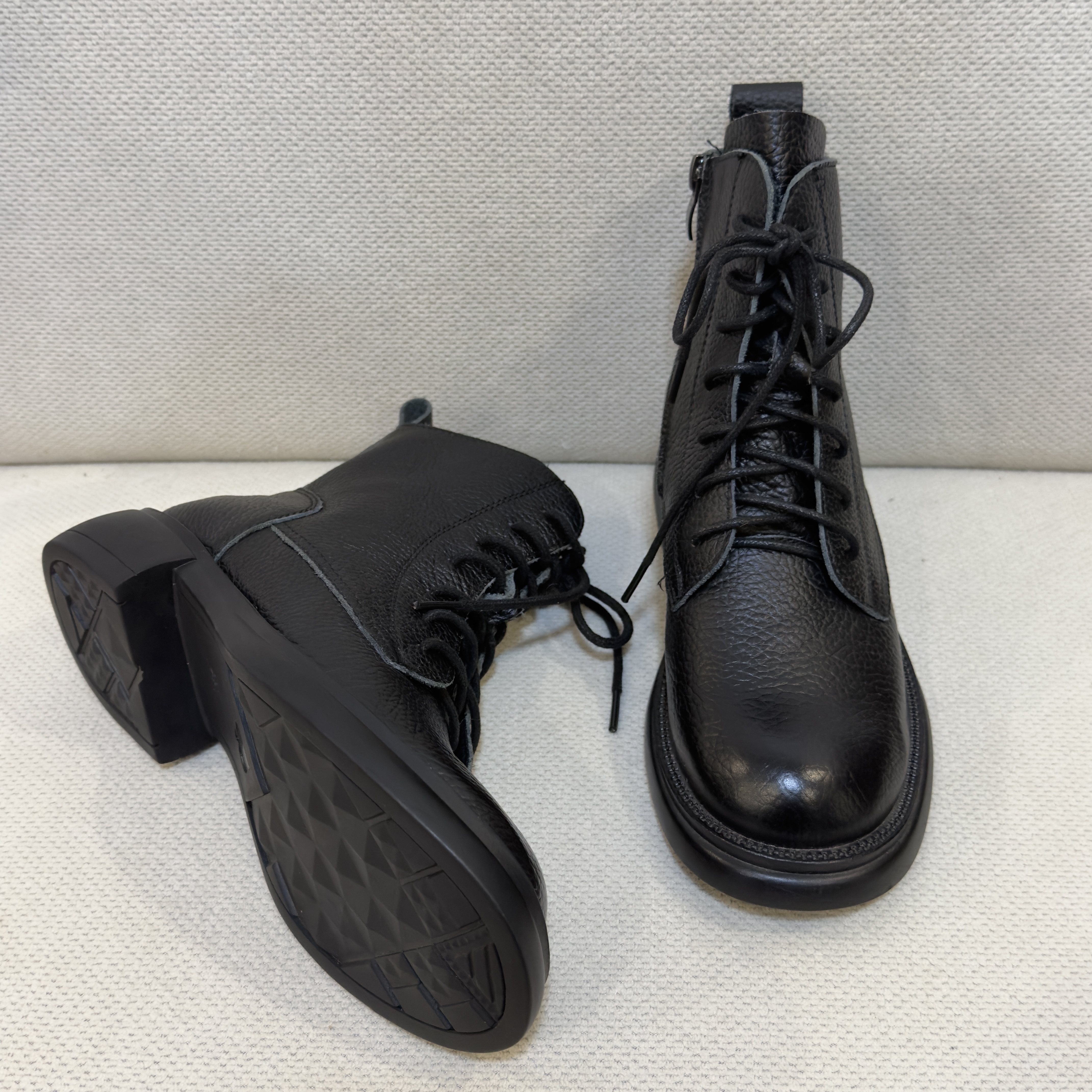 头层牛皮单靴加绒加厚内里马丁靴女秋冬季系带中跟高档牛皮短靴女