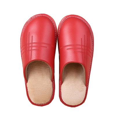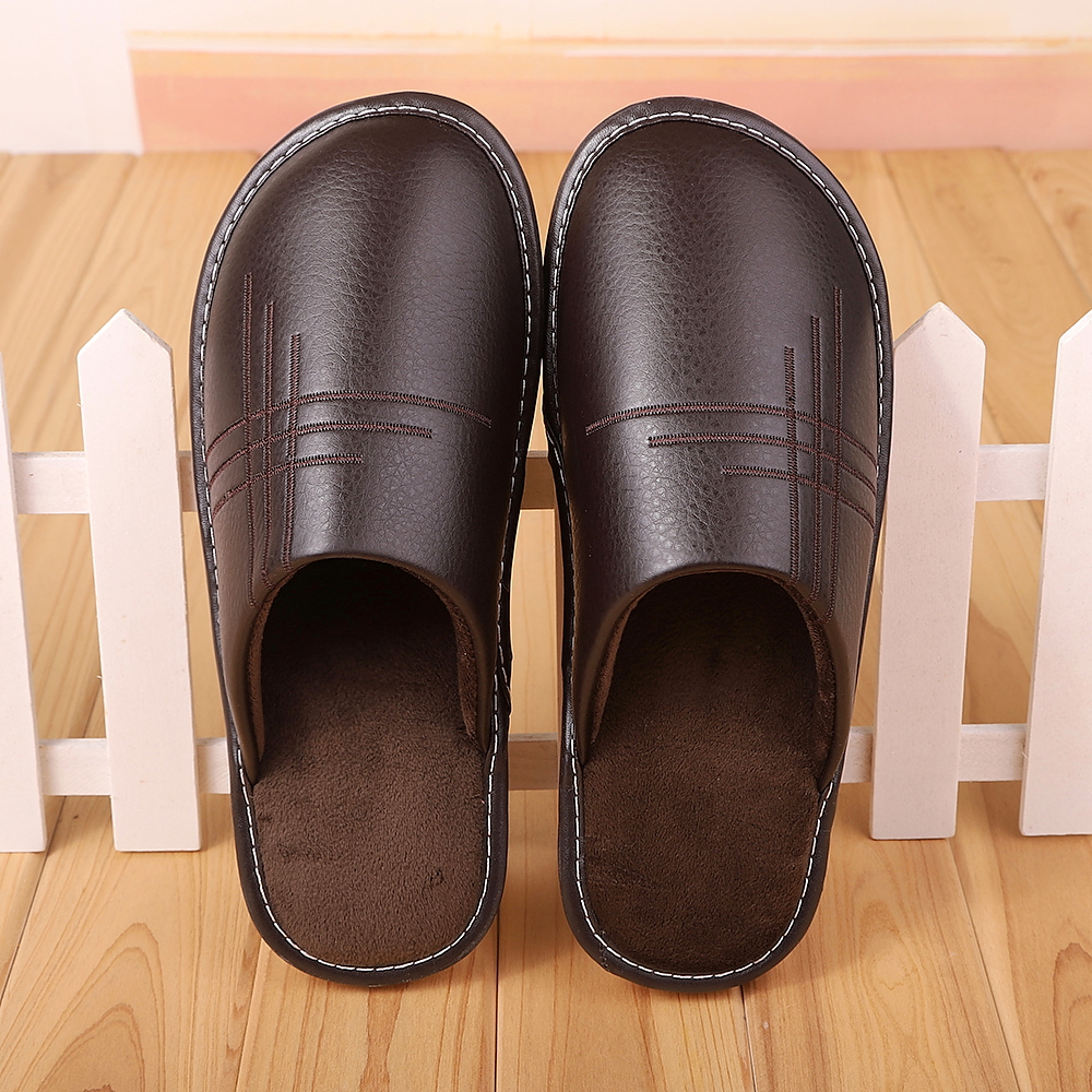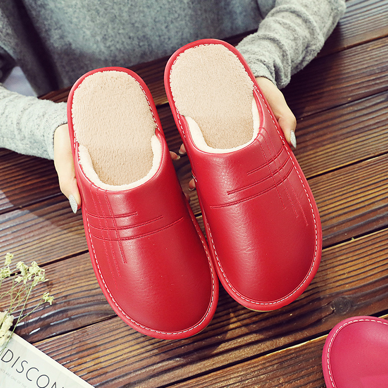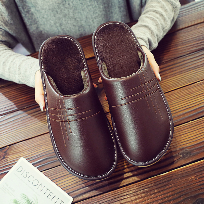居家棉拖鞋冬季情侣室内地板防滑防水厚底保暖家用皮拖鞋男女冬天