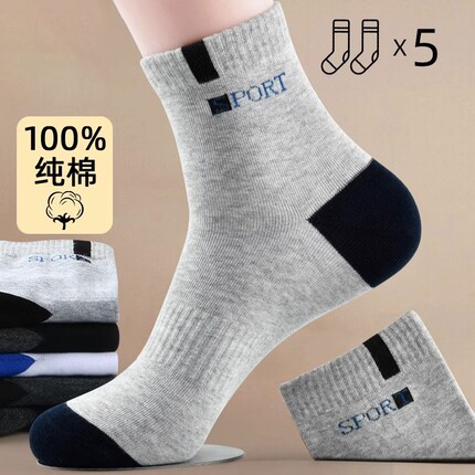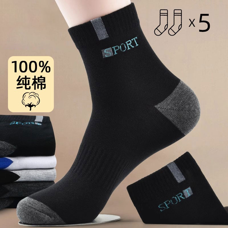 袜子男款青少年防臭吸汗春秋款中筒纯棉运动袜无骨全棉袜男士