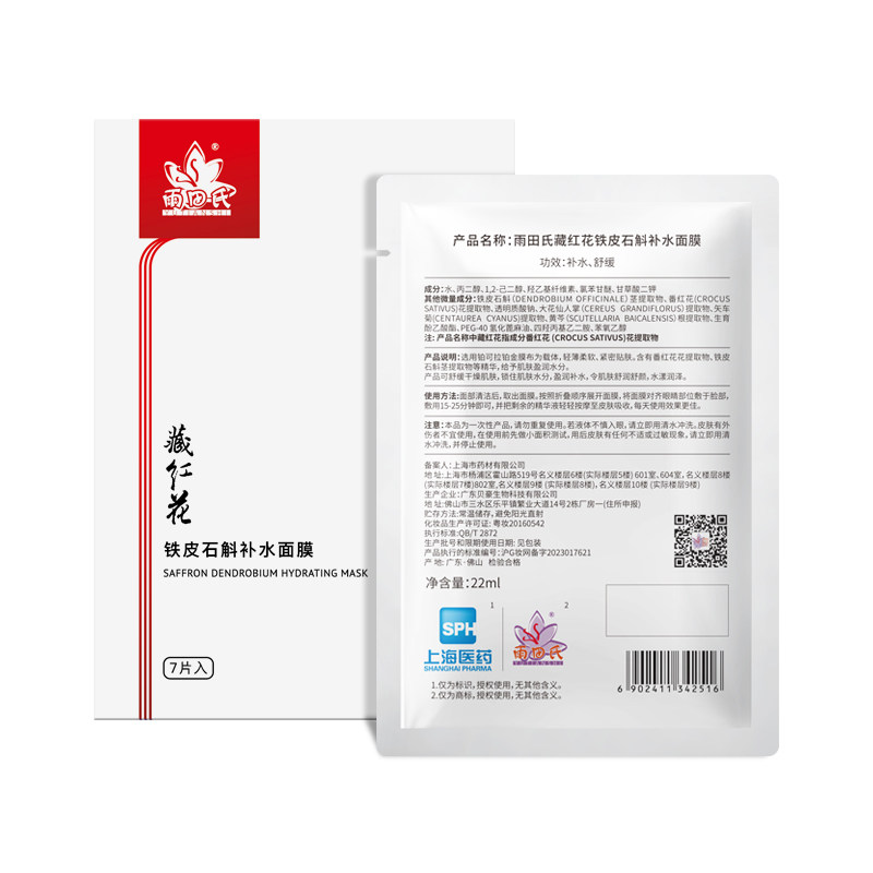 上海医药雨田氏藏红花铁皮石斛补水面膜补水保湿润颜嫩肤