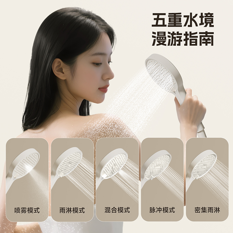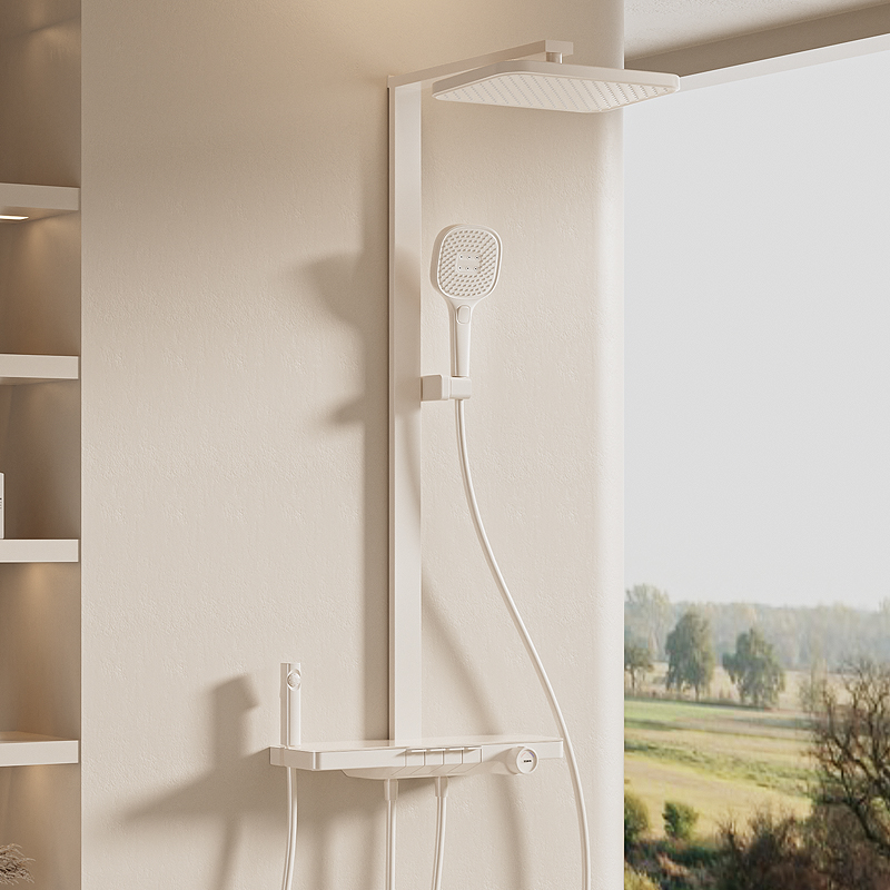 浪鲸奶白色淋浴花洒冷热钢琴键大置物台恒温花洒058