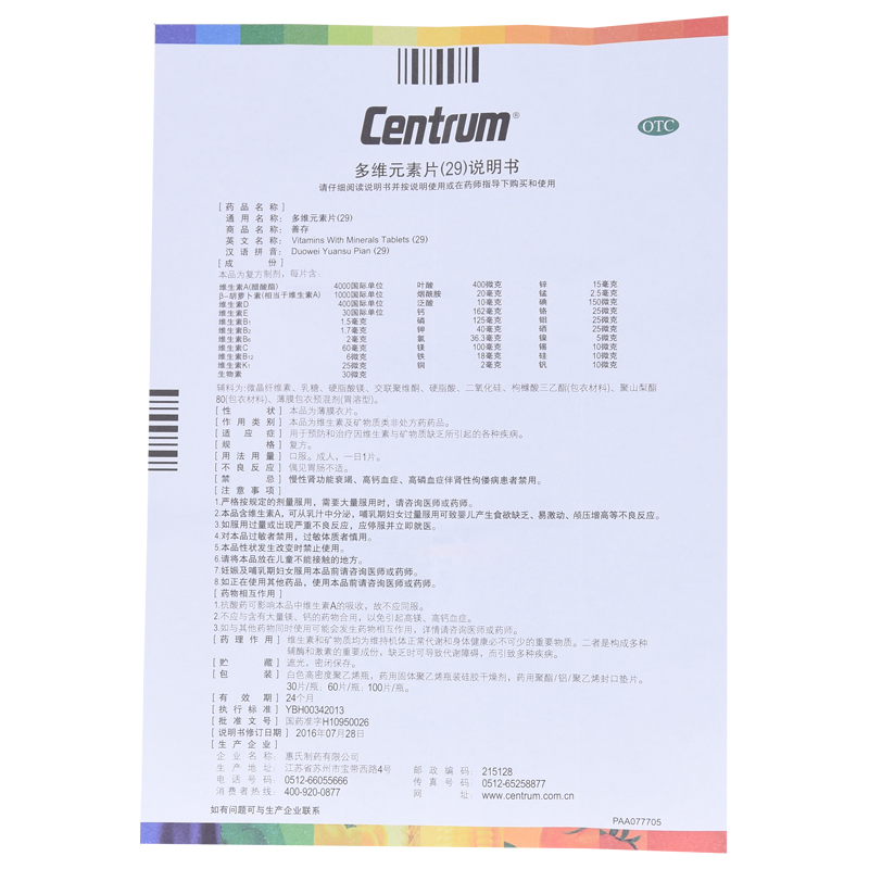 善存多维元素片29复合维生素30/60/100官方旗舰店男女士V唯生素银