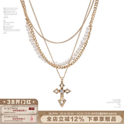 【明星同款】SUMIYAKI 美式巴洛克珍珠十字架项链高级叠带毛衣链
