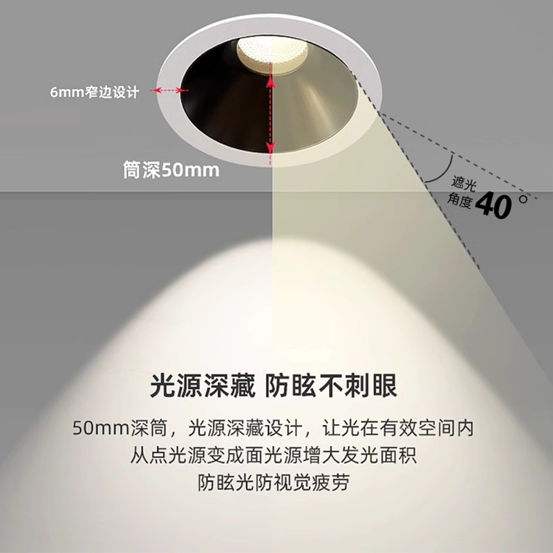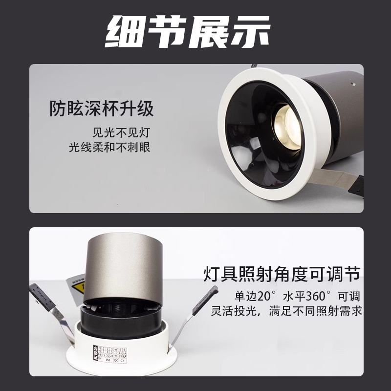 三雄极光灵动LED射灯深杯防眩小山丘嵌入式COB酒店客厅可调天花灯