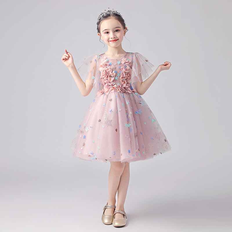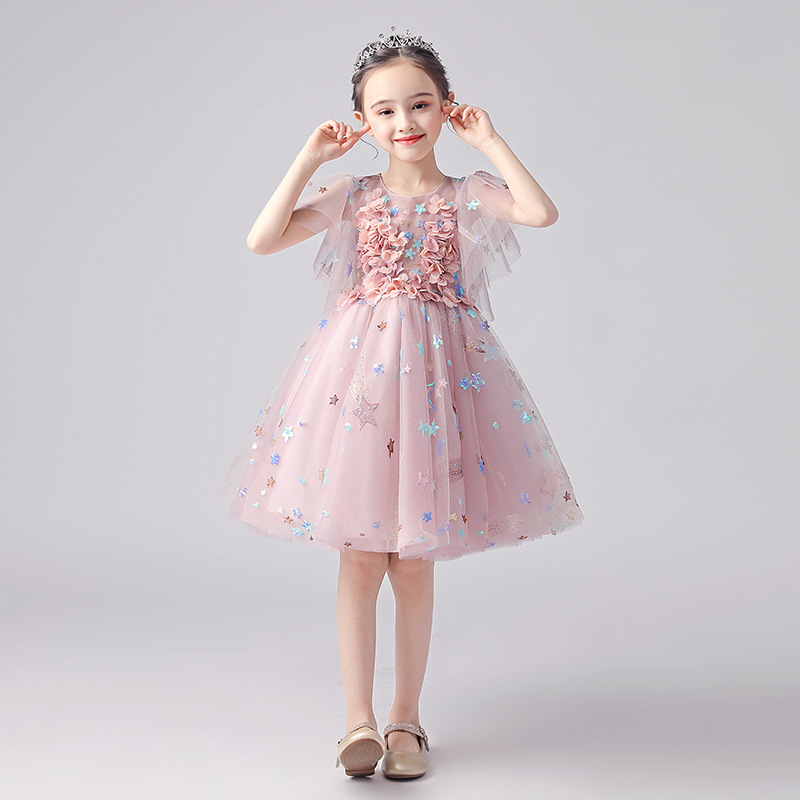 女童公主裙2021新款春粉色短款超洋气小礼服裙子儿童连衣裙礼服