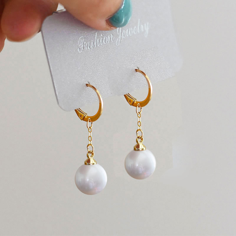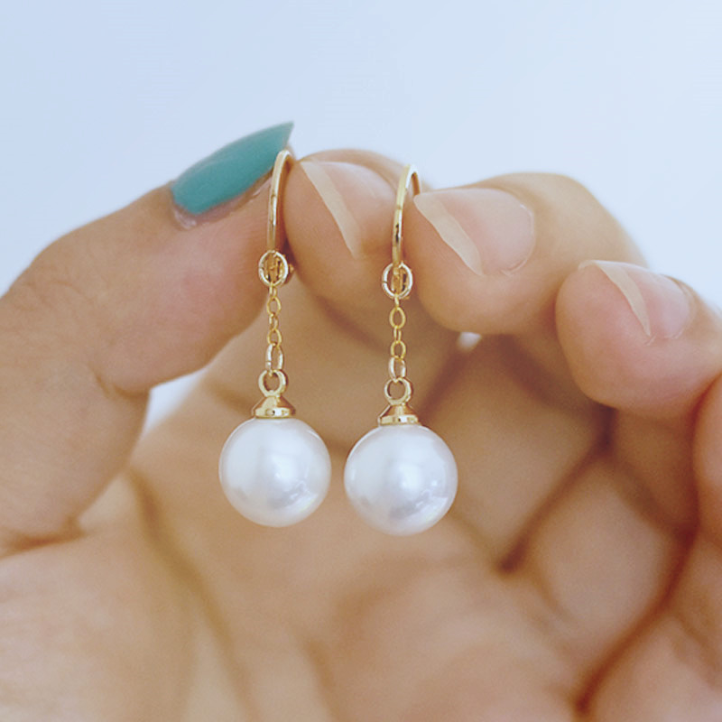 天然珍珠耳环女14k金防过敏耳扣百搭经典日常上班气质中长款耳坠