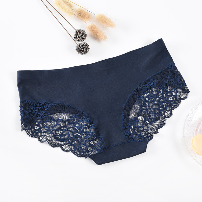爆款无痕一片式冰丝内裤女士性感蕾丝中腰三角裤纯棉底裆大码