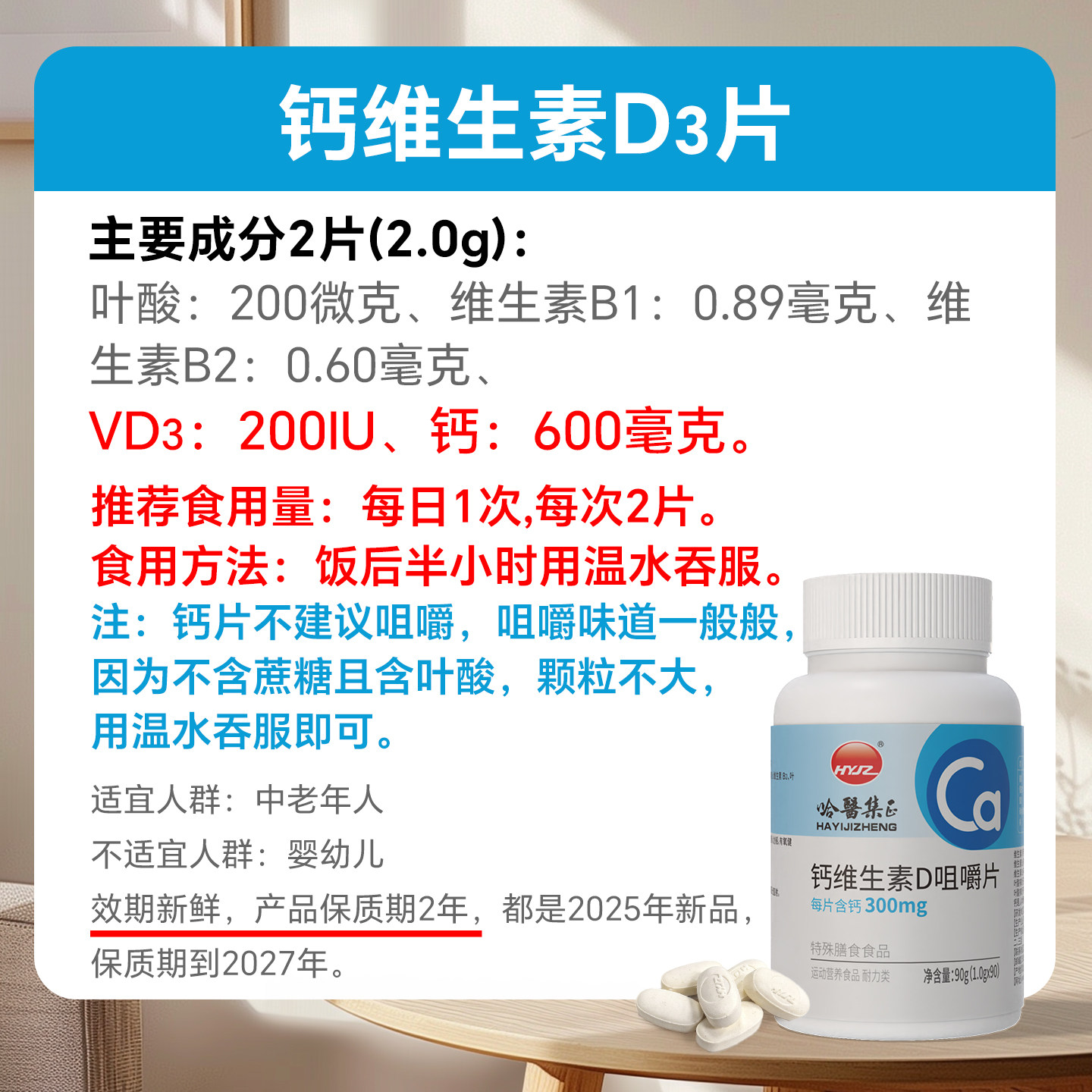 90片中老年钙片VD3含叶酸200μg