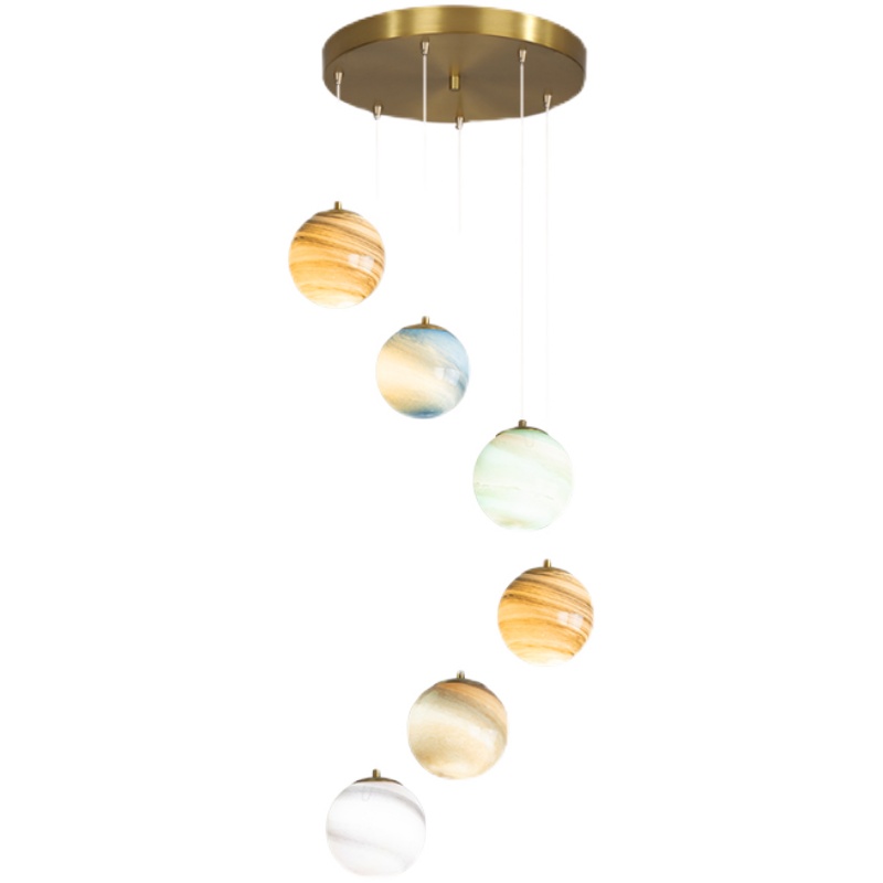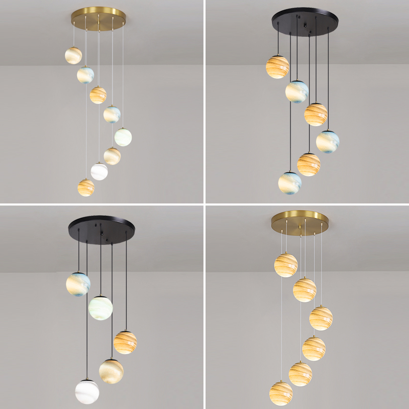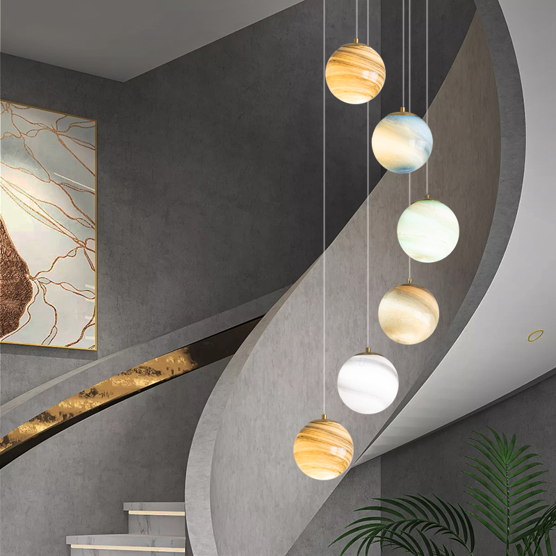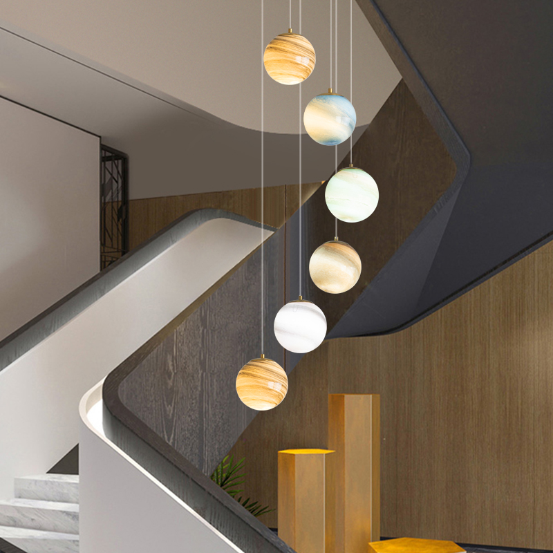 楼梯长吊灯北欧复古复式楼别墅走廊餐厅灯具创意个性长线圆球灯饰