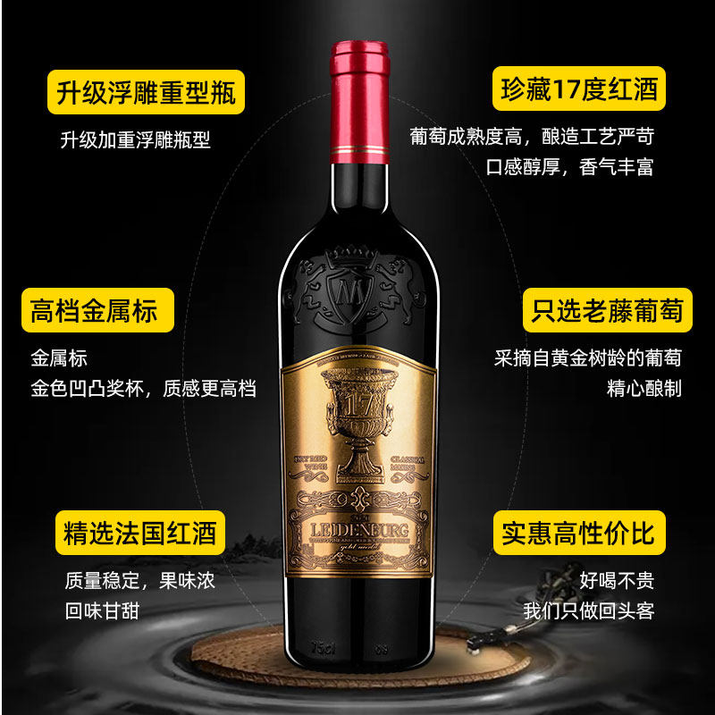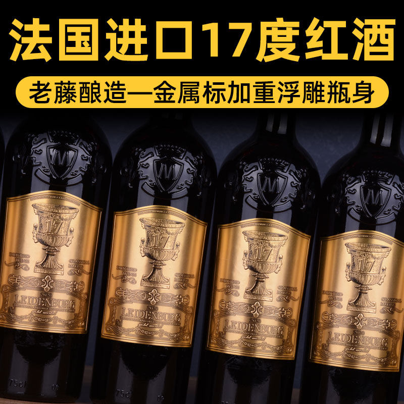 法国进口高度红酒17度干红葡萄酒750ml整箱6支装彩箱包装送礼高档
