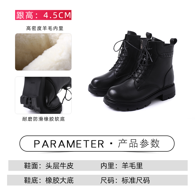 真皮牛皮皮毛一体女鞋马丁靴女士冬季加绒加厚短靴羊毛棉鞋雪地靴