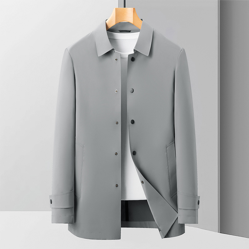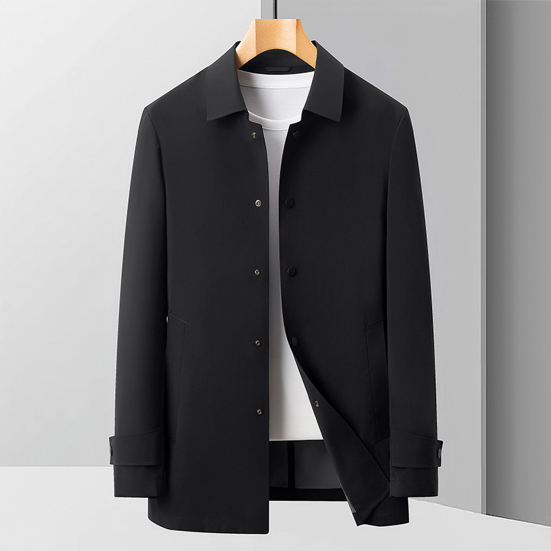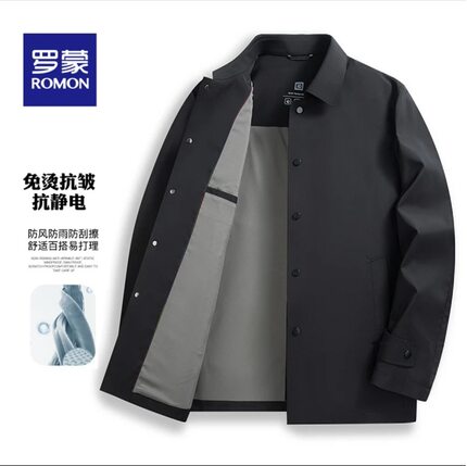 2024秋新款男士夹克风衣抗皱翻领男款修身商务休闲外套行政纯色