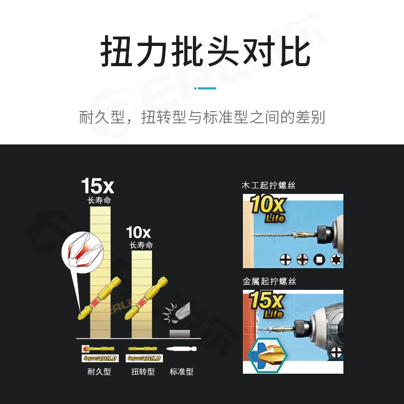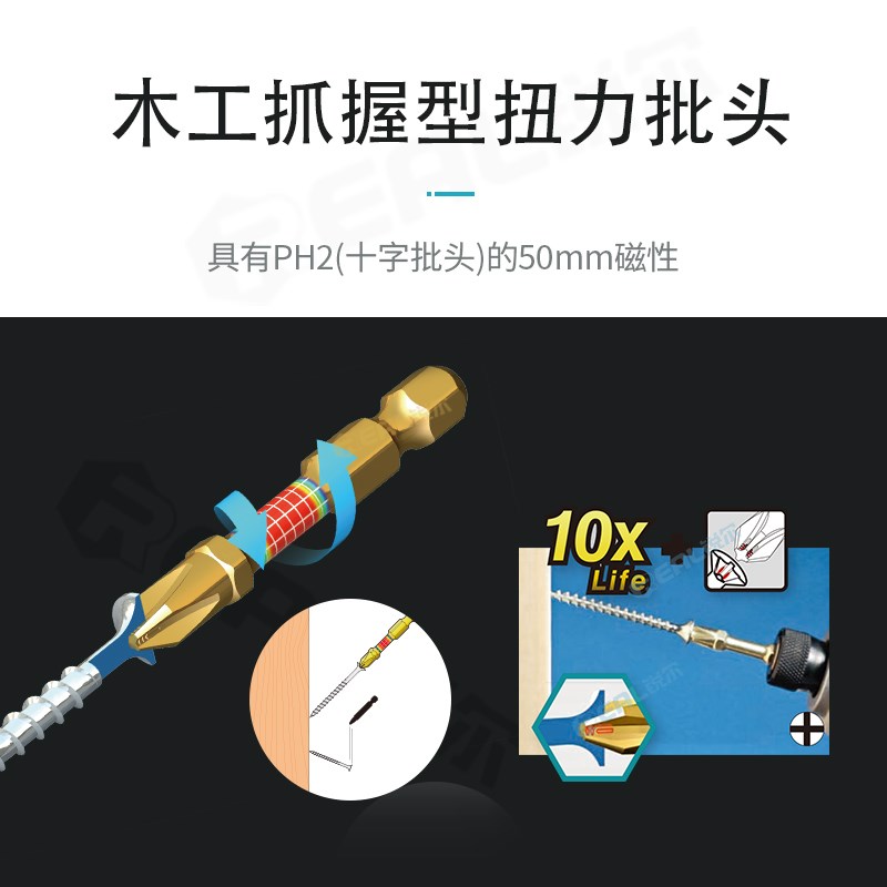牧田Makita扭力螺丝批头带磁性长寿金色螺丝刀十字米字花型方型