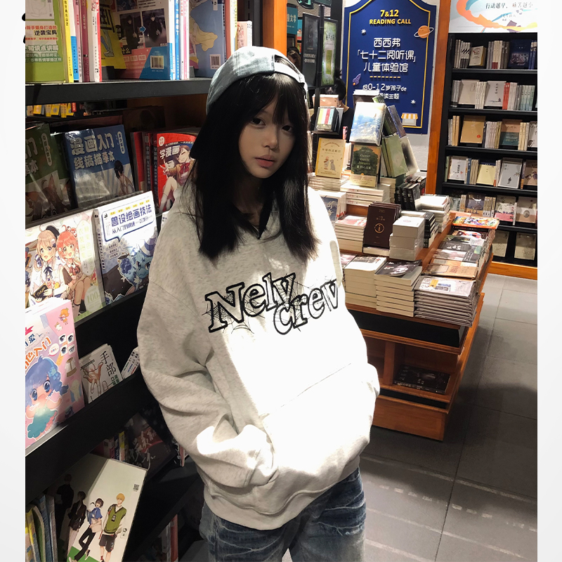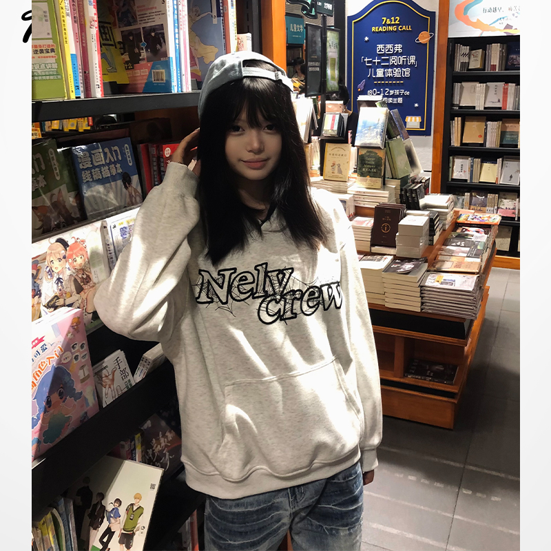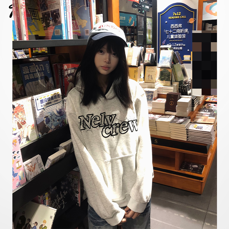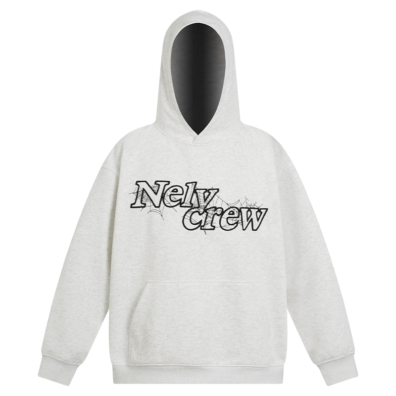nely小尼力复古蜘蛛蛛网logo连帽卫衣男女情侣宽松休闲百搭美式潮