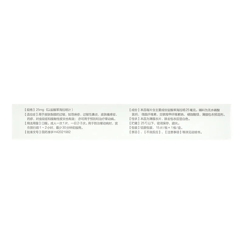 人福殊佑盐酸苯海拉明片15片过敏荨麻疹过敏鼻炎皮肤痒