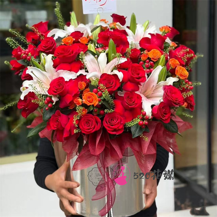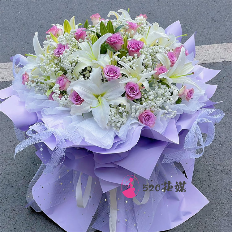 内蒙古兴安盟科尔沁右翼前中旗同城鲜花店送玫瑰百合花束老婆生日