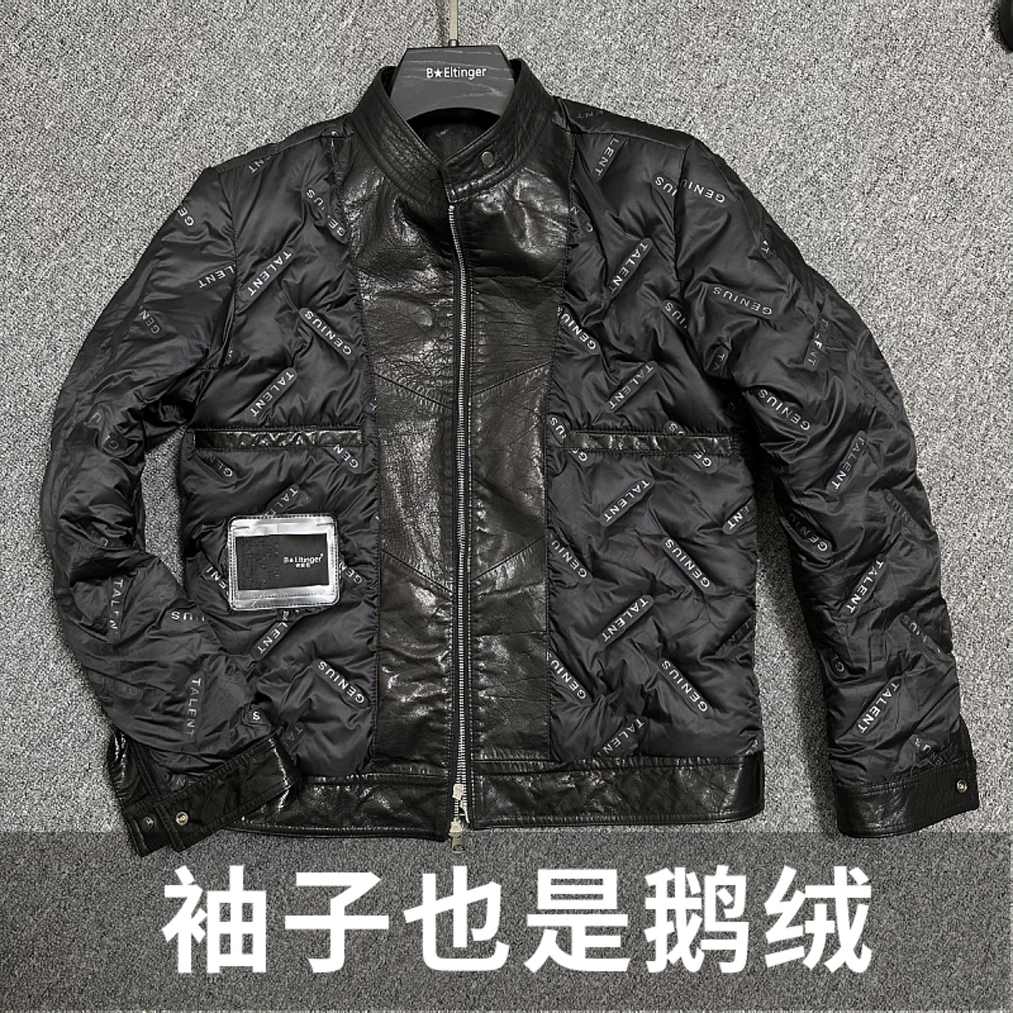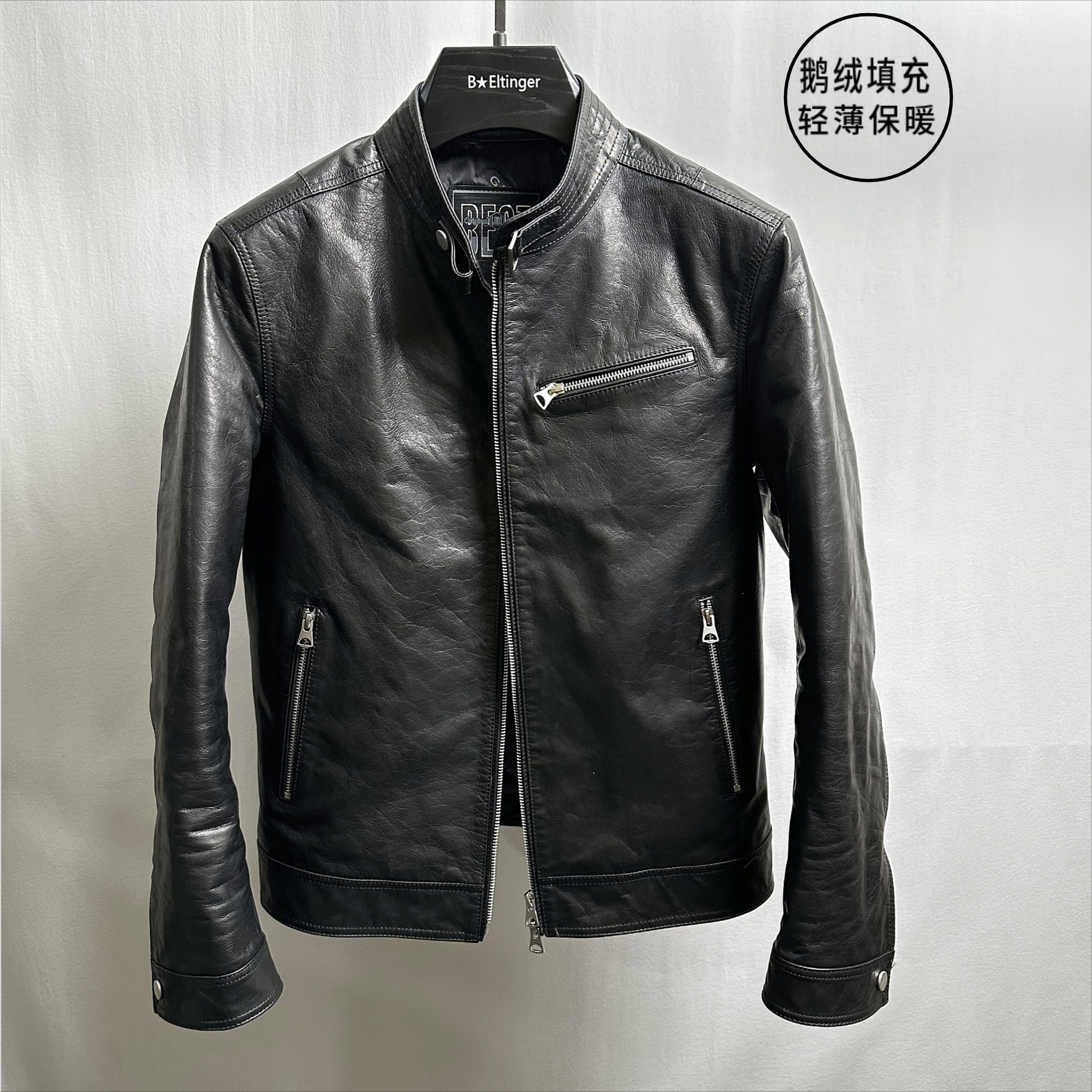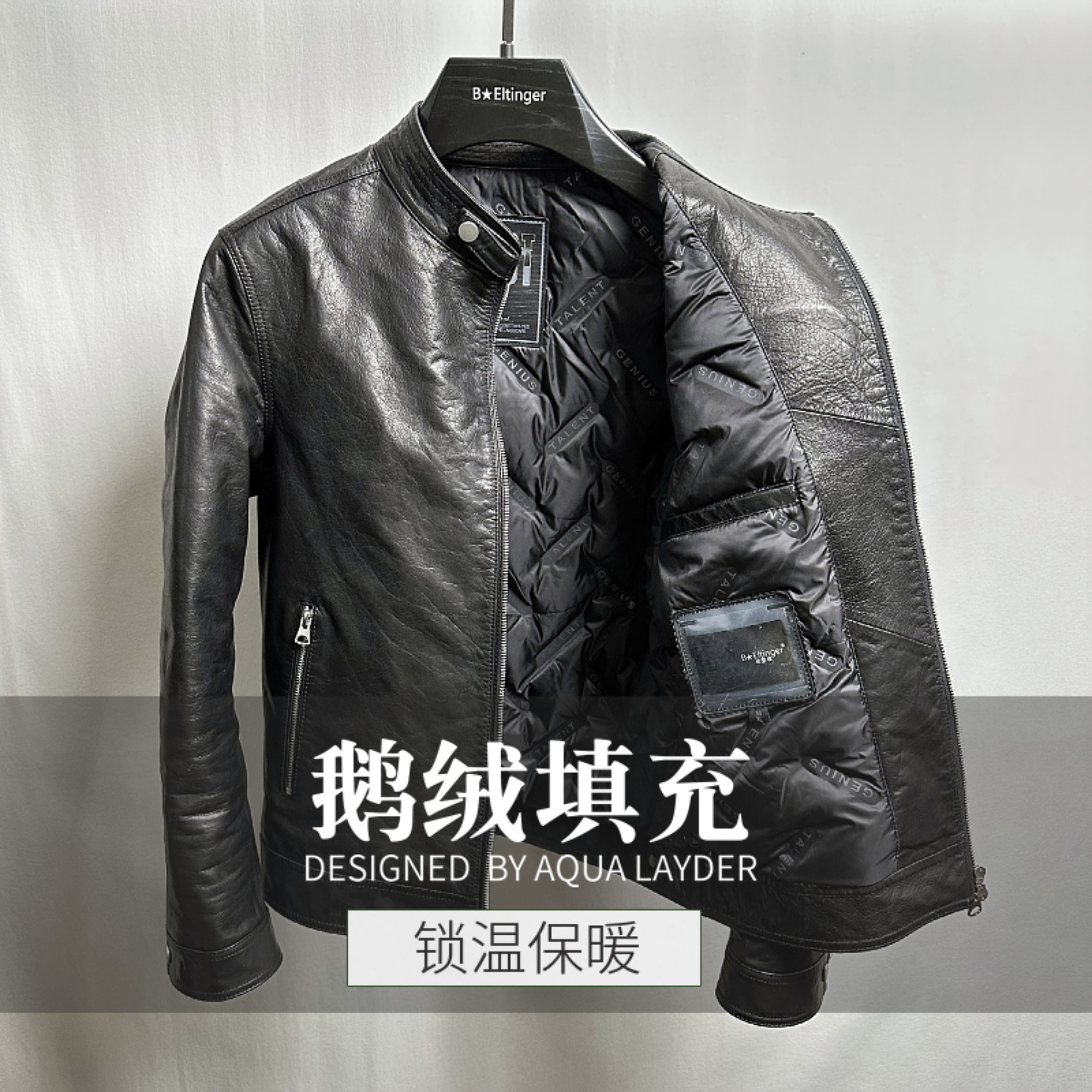 真皮皮衣男机车夹克小牛皮立领羽绒服男保暖冬季短款鹅绒加厚外套